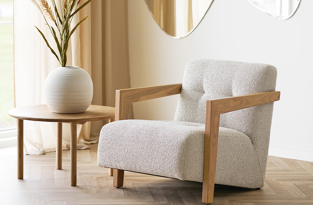 Sofas, Sessel oder Betthäupter in Cloud Dancer wirken modern und gleichzeitig zeitlos. Der Farbton eignet sich hervorragend für große Möbelstücke, da er nicht dominiert, sondern sich harmonisch in den Raum einfügt. In Kombination mit Holz – etwa Eiche, Esche oder Walnuss – entsteht ein warmer, natürlicher Look, der perfekt zu den Einrichtungstrends 2026 passt. Wer dennoch etwas Farbe ins Spiel bringen mag, kann mit der passenden Wandfarbe ein Statement setzen. Wir denken da an einen blassen Rosaton, zartes Mintgrün oder Beige, das für mehr Tiefe steht.