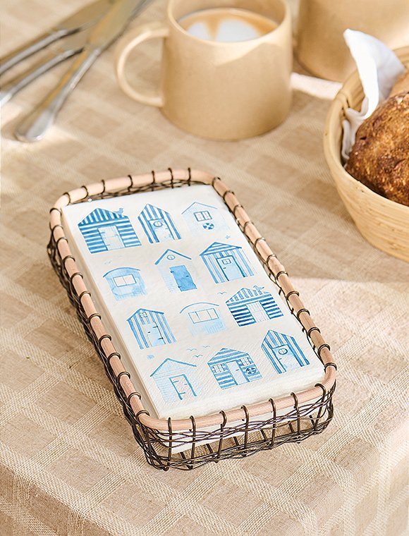 Mit den Servietten Strandhäuser, 16 Stück, 20x10 cm von Ib Laursen holst du dir sofort das Gefühl von Meeresbrise und Urlaub an den Tisch. Die 16 hochwertigen Papierservietten im praktischen Hochkantformat sind 10 cm breit und 20 cm hoch – perfekt, um deinen Gästen einen liebevollen maritimen Akzent zu bieten. Entfaltet haben sie das ganz klassische 40x40 cm Format. Der sanfte Cremeton bildet eine warme, natürliche Basis, auf der sich zwölf kleine, charmante Strandhäuser verteilen. In vier Reihen zu je drei Häuschen präsentieren sie sich in harmonischen Blau-Weiß-Nuancen, begleitet von ein paar friedlich kreisenden Möwen, die das Küstenflair noch stimmungsvoller machen. Diese Servietten eignen sich wunderbar für sommerliche Tischdekorationen, Gartenfeste, Picknicks am See, Geburtstagsfeiern mit Meeresthema oder einfach für ein gemütliches Frühstück, bei dem du dir einen Hauch Strandurlaub gönnen möchtest. Auch in Kombination mit anderen maritimen Accessoires setzen sie einen liebevollen Akzent und lassen deine Tischgestaltung sofort lebendiger wirken. Ob du Gäste empfängst, ein kleines Fest planst oder dir selbst eine Freude machen willst – die Servietten Strandhäuser, 16 Stück, 20x10 cm von Ib Laursen bringen eine frische, fröhliche und zugleich wohlig-träumende Atmosphäre in deinen Alltag. In jeder Packung bekommst du 16 Stück, sodass du für mehrere Anlässe bestens ausgestattet bist.