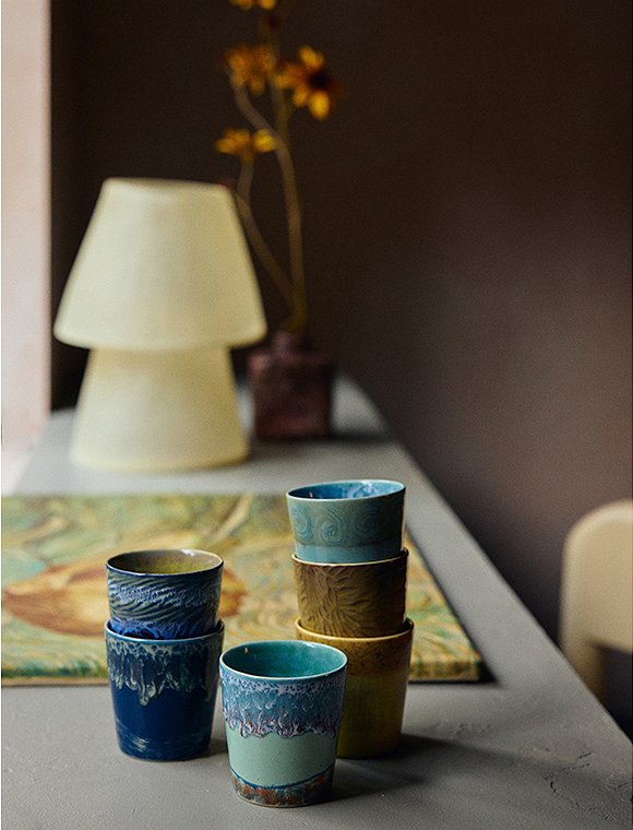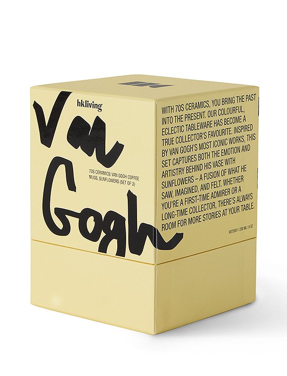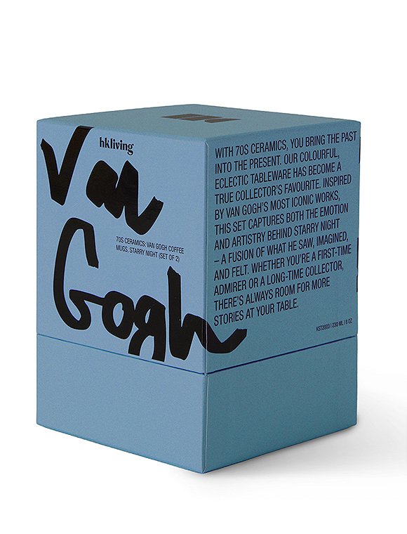 Mir dem 2er Set Coffee Mugs Van Gogh, 70s von HKliving holst du dir die Vergangenheit in die Gegenwart. Das farbenfrohe, vielseitiges Geschirr ist bei Sammlern sehr beliebt. Inspiriert von Van Goghs berühmtesten Werken, fangen diese Sets die Emotion und Kunstfertigkeit seiner Sternennacht ein – eine Verschmelzung seiner Eindrücke, Vorstellungen und Gefühle. Ob du Van Goghs Kunst gerade erst entdeckst oder schon lange sammelst, auf deinem Tisch ist immer Platz für neue Geschichten. Du kannst zwischen drei einzigartigen Sets von je zwei Kaffeebechern wählen: Das Set 'Starry Night' ist in dunklen Blautönen gehalten, das Set 'Self Portrait' zeigt wunderschöne Farbverläufe in Hellblau-/Blautönen und das Set 'Sunflowers' macht seinem Namen mit einzigartigen Gelbtönen alle Ehre – eine Verschmelzung seiner Eindrücke, Vorstellungen und Gefühle. Hol' dir mit dem wunderschönen 2er Set Coffee Mugs Van Gogh, 70s von HKliving ganz neue Designs der Kaffeebecher in deine Sammlung. Das Set wird in einer stylishen farblich passenden Geschenk Box geliefert. Details: