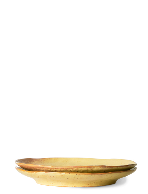 2er Set Frühstücksteller bold & basic von HKliving - aus Hand gearbeiteter Keramik. Die hübschen Teller gibt es in gelbbraun und braun - sie lassen sich perfekt kombinieren und sind unsere absoluten Favoriten in Sachen Geschir. Die Serie bold & basic hat eine seidenmatte Oberfläche und besticht mit ganz wunderbaren Farben und schönen organischen Formen. Alle Töne harmonieren miteinander - und die unterschiedlichen Formen ergänzen sich. Wer noch ein wenig mehr Abwechslung sucht, nimmt einfach die schönen Teller und Schalen mit Palmen dazu. Kombiniere einfach verschiedene Farben und Formen und du wirst sehen, das süße 2er Set Frühstücksteller bold & basic von HKliving ist ganz einfach perfekt dazu - wir wünschen dir viel Spaß beim Mix and Match.