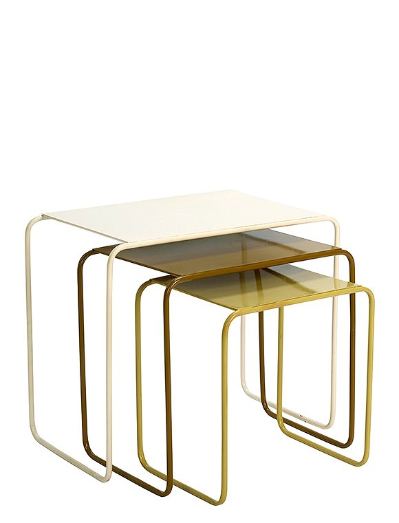 Zeitlose, ineinander schiebbares 3er Set Eisentische von Madam Stoltz. Die ineinander schiebbaren Beistelltische aus Eisen verleihen jedem Raum Charakter und sind von indischen Handwerkstraditionen inspiriert. Dieses 3er-Set ist platzsparend und eignet sich perfekt für kleine Wohnbereiche oder eine flexible Lounge. Nutze alle drei zusammen für eine elegante Beistelltisch-Kombination oder stelle sie einzeln auf, um Gäste zu bewirten, Bücher abzustellen oder deinen Lieblingssessel stilvoll in Szene zu setzen. Die platzsparenden Beistelltische lassen sich zusammen oder einzeln verwenden und bestechen durch eine harmonische, dezente Farbkombination, die traditionelle Möbelstücke modern interpretiert. Die Eisentische sind pulverbeschichtet und bieten daher eine glatte, strapazierfähige Oberfläche - die sich ideal für den täglichen Gebrauch eignet. Jedes Stück ist aus robustem Eisen gefertigt, besticht durch klare Linien und ist in dem einen 3er Satz in den Farbtönen Creme, Tapenade und Limonade gehalten – und in dem anderen 3er Satz alle in Stahlfarben - für eine ruhige und harmonische Atmosphäre. Die schlanken Gestelle lassen sich platzsparend ineinander schieben, sodass das Beistelltisch-Set bei Nichtgebrauch einfach verstaut werden kann und dennoch jederzeit bereit ist, Kaffee zu servieren, Kerzen zu präsentieren oder eine gemütliche Leseecke zu gestalten. Hab viel Spaß an den 3er Set Eisentische von Madam Stoltz.Details: