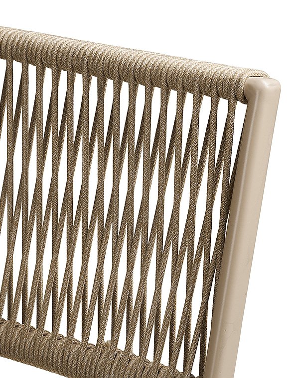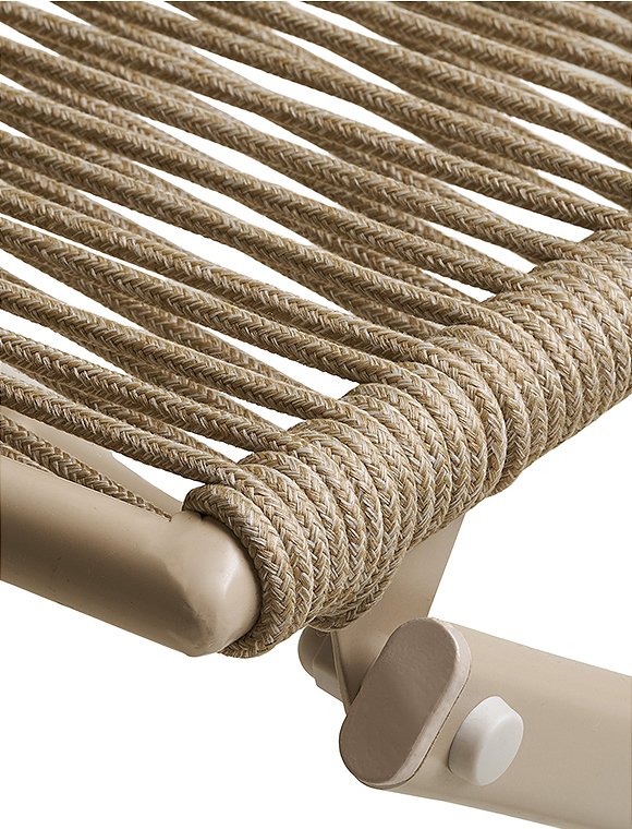 Maße (HxBxL): Stuhl: 84 x 55 x 46 cm Tisch: 71 x ø60 cmmax. 110 kg belastbarMaterial: Rahmen: MetallBespannung: Seil aus Polyester