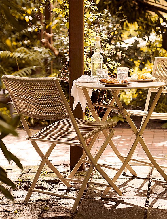 Egal ob drinnen oder draußen - das hübsche Arcas Bistro Set von House Nordic passt überall hin. Zwei Klappstühle und ein Tisch machen dir das Leben leicht, denn bei Nichtgebrauch kannst du die Möbel ganz einfach platzsparend verstauen. Über Winter lagerst du das Bistro-Set am besten in einem trockenen Raum, denn dann bleiben dir die Möbel viele, viele Jahre erhalten. Das süße Set ist aus lackiertem Metall in Taupe und einer Rücken- und Sitzfläche aus gewebten Seil hergestellt. Das macht die Möbel charmant, bequem und gut kombinierbar. Der Stuhl hat die Maße 84 x 55 x 46 cm, der Tisch ist 71 x Ø60 cm groß. Hab viel Spß an dem Arcas Bistro Set von House Nordic.Details: