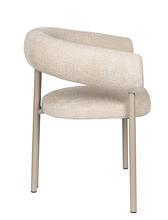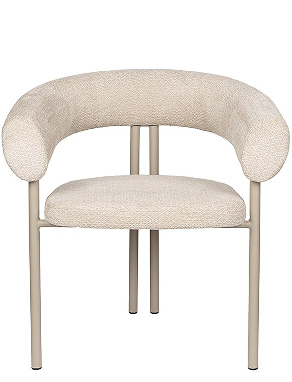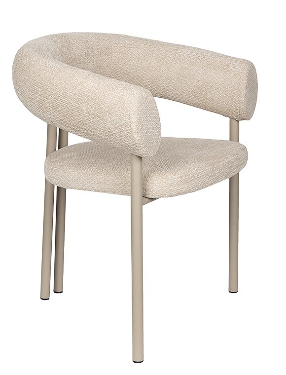 Extra cosy – der Armlehnenstuhl Heels in beige von Zuiver in beige ist ein echtes Statement für stilvolle Gemütlichkeit. Schon auf den ersten Blick lädt er dazu ein, Platz zu nehmen und den Moment zu genießen. Rückenlehne und Armlehnen gehen harmonisch ineinander über und formen einen sanften Halbkreis, der den Körper angenehm umschließt und ein Gefühl von Geborgenheit vermittelt. Der weiche, hochwertige Bezug in einem warmen Beigeton unterstreicht die behagliche Ausstrahlung des Sessels und fügt sich mühelos in unterschiedlichste Wohnstile ein - von modern bis skandinavisch. Auch das filigrane Metallgestell mit matter Pulverbeschichtung ist farblich abgestimmt und sorgt für einen eleganten, ruhigen Gesamteindruck. Die dicht beieinanderstehenden Hinterbeine verleihen dem Design eine charmant-verspielte Note und machen den Sessel zu einem besonderen Blickfang. Mit seinen Maßen von 76x72x57 cm bietet der Heels-Sessel großzügigen Sitzkomfort bei kompakter Form. Ob im Wohnzimmer, im Schlafzimmer oder als stilvolle Ergänzung im Arbeitsbereich – dieser Sessel verbindet Design und Behaglichkeit auf besonders einladende Weise. Der schöne Armlehnenstuhl Heels in beige von Zuiver ist einfach gemacht für entspannte Lieblingsmomente.