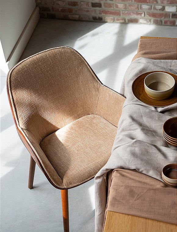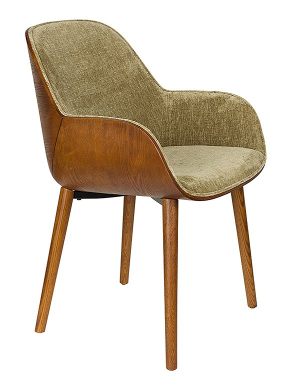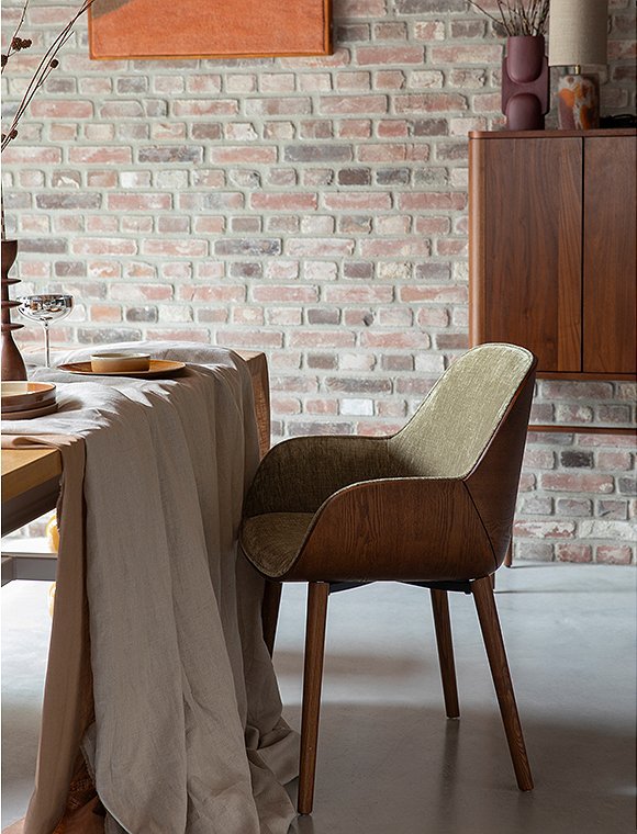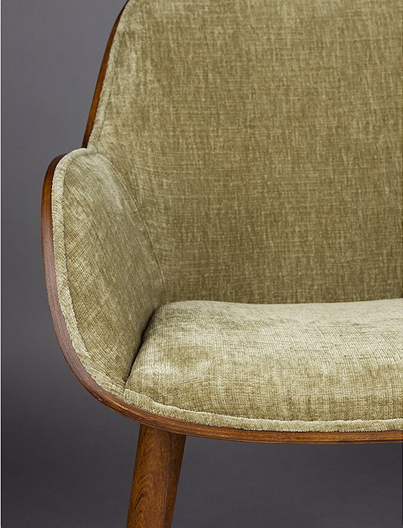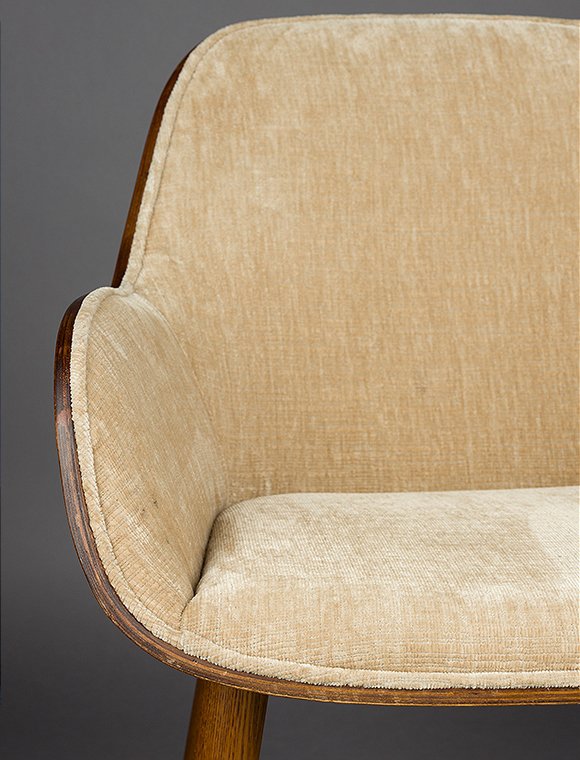 Vintage Charme! Der Armlehnenstuhl Taylor mit Samtbezug von Dutchbone ist alles andere als ein gewöhnlicher Schalensitz. Seine Sitzfläche besteht aus zwei elegant geschwungenen Holzteilen mit edlem Walnuss-Finish. Dieses besondere Konstruktionsdetail verleiht dem Stuhl seine unverwechselbare Optik – vor allem durch die markante Naht zwischen Rückenlehne und Armlehnen, die das Design stilvoll betont. Erhältlich ist Taylor in zwei edlen Farbvarianten: einem satten Grün oder einem eleganten Beige. Der großzügige Bezug aus weichem Samt – wahlweise in Grün oder in einem hellen, beigefarbenen Ton – sorgt nicht nur für ein luxuriöses Aussehen, sondern bietet dir auch außergewöhnlichen Komfort. Die angenehm gepolsterte Sitzfläche und die ergonomisch geformte Rückenlehne laden dazu ein, lange und entspannt am Tisch sitzen zu bleiben – perfekt für ausgedehnte Dinnerabende oder gemütliche Gespräche. Die schlanken Holzbeine greifen das Walnuss-Finish der Sitzschale harmonisch auf und unterstreichen den warmen Vintage-Charme. Mit seinem Design versetzt dich Taylor direkt in die stilvolle Atmosphäre der 1970er-Jahre und verbindet diese gekonnt mit modernem Sitzkomfort, der perfekt zu deinem heutigen Esstisch passt. Mit dem Armlehnenstuhl Taylor, Samt von Dutchbone holst du dir ein charakterstarkes Statement-Piece nach Hause, das deinem Esszimmer eine warme, einladende Ausstrahlung verleiht – und dabei Komfort und Design mühelos vereint.Details:
