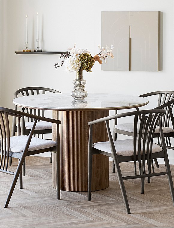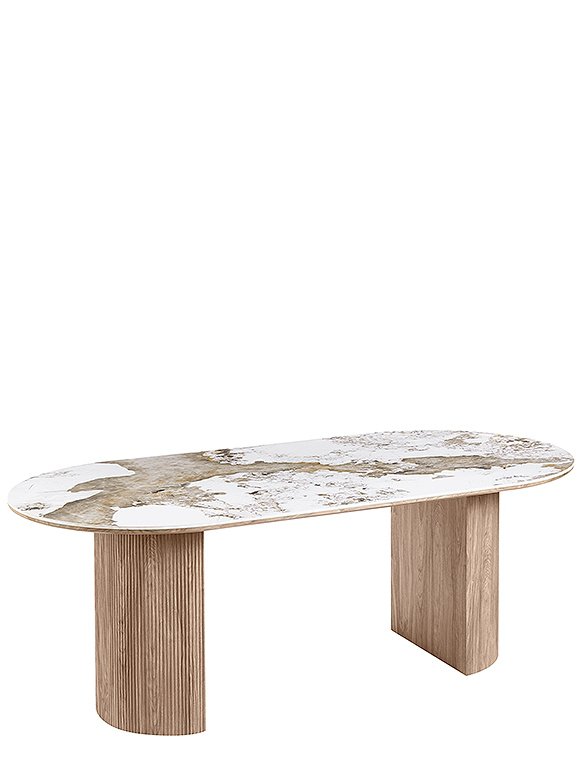 Der Athens Esstisch von House Nordic ist ein gelungener Entwurf des dänischen Labels. Der starke Sockel mit den charmanten Rillen und die sehr dekorative und leicht wirkende Tischplatte bilden einen gekonnten Materialmix. Das Keramiktop mit Marmoroptik lässt sich wunderbar kombinieren - wirkt modern und ausgesprochen charmant. Der Tisch Athens ist in drei verschiedenen Formaten erhältlich - wahlweise rund (76xØ120 cm oder 76xØ140 cm) oder oval (76x100x210 cm) - hier finden richtig viele Personen Platz. Der Tisch wird zerlegt geliefert - aber keine Angst eine genaue Anleitung liegt bei. Hab' viele gemütliche Stunden mit dem Athens Esszimmertisch von House Nordic in weiß/braun – wir wünschen dir viel Freude damit! Details:
