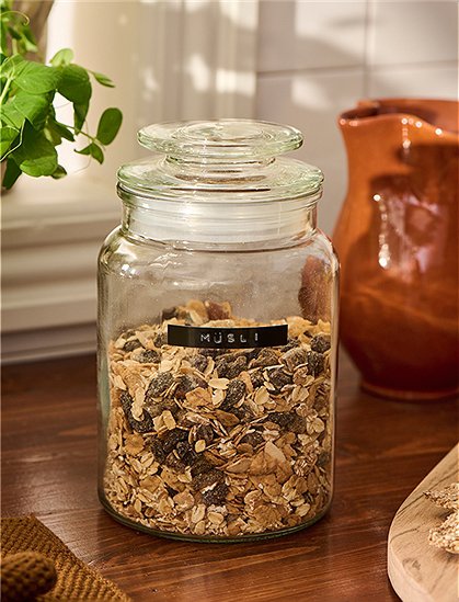 Das Aufbewahrungsglas mit Glasdeckel von Ib Laursen ist genau das Richtige für dich, wenn du nach einer stilvollen und praktischen Möglichkeit suchst, deine Lebensmittel frisch und übersichtlich zu lagern. Denn dieses wunderschöne Glas erinnert an die klassischen Bonbongläser aus vergangenen Zeiten und bringt einen Hauch Nostalgie in deine Küche. Erhältlich in drei verschiedenen Größen – 1020 ml, 1250 ml und 1500 ml – bietet das runde Glas genügend Platz für all deine Vorräte. Egal, ob du Nüsse, Nudeln, Mehl, Haferflocken, Müsli oder Süßigkeiten aufbewahren möchtest, hier findest du die perfekte Größe für deine Bedürfnisse. Der gläserne Deckel ist nicht nur ein echter Hingucker, sondern auch funktional: Dank des integrierten Silikonrings bleiben deine Lebensmittel länger frisch. Der Deckel schließt luftdicht ab und schützt den Inhalt vor Feuchtigkeit und äußeren Einflüssen. Mit diesem charmanten Glasgefäß bringst du nicht nur Ordnung in deine Küche, sondern auch einen dekorativen Akzent, der deine Liebe zum Detail und zu schönen Dingen unterstreicht. Mach' dein Zuhause noch gemütlicher und praktischer mit dem klassischen Aufbewahrungsglas mit Glasdeckel von Ib Laursen.