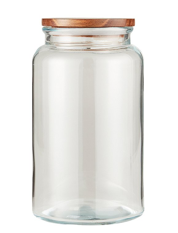 Platz für Vorräte. In dem schlichten Aufbewahrungsglas mit Holzdeckel von Ib Laursen lassen sich verschiedenste Dinge aufbewahren - ganz klassisch von Zucker, Mehl oder Pasta über Tees bis hin zu Nähutensilien, wie Garnrollen, Reißverschlüssen oder Geschenkbändern. Tipp: Wenn du den Deckel weglässt, erhältst du im Handumdrehen eine schlicht schöne Glasvase. Wir bieten die hübschen Gläsern in sechs verschiedenen Größen an, davon drei Varianten mit einem braunen Holzdeckel (2,35 L, 3L und 3,75L) sowie drei Modelle mit einem helleren Deckel aus Bambus (15xØ12,5 cm; 19xØ14 cm und 23,5xØ1 cm). Arrangiere die Gläser einzeln im Küchenregal oder kombiniert in verschiedenen Größen auf der Küchenzeile. Die transparenten Gefäße kommen ganz ohne Beschriftung aus und bieten vielen Lebensmitteln eine lange und frische Aufbewahrung. Das typisch skandinavisch natürlich gehaltene Aufbewahrungsglas mit Holzdeckel von Ib Laursen ist ein Küchenaccessoire mit hohem Funktionswert und einem zeitlosen Design.