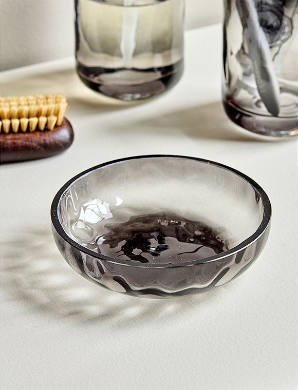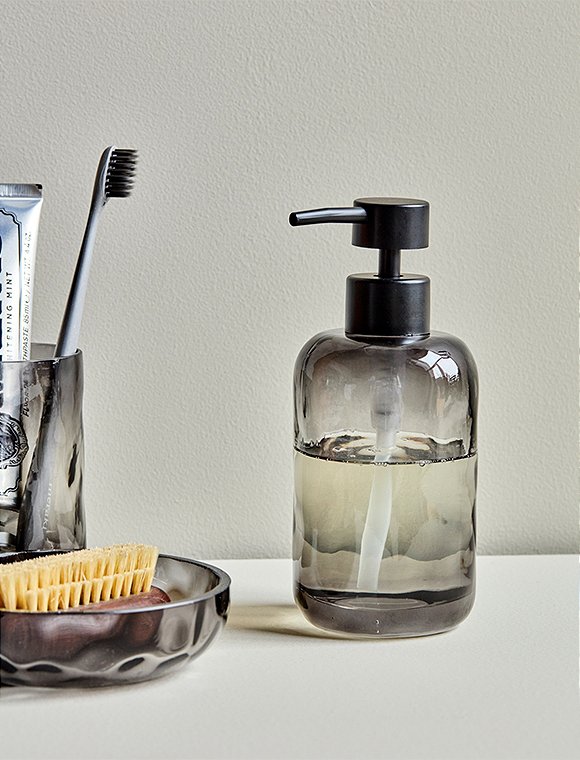 Das Badaccessoires Wah von house doctor besteht aus semitransparentem, rauchgrauem oder grünem Glas mit einer unregelmäßigen, leicht gewellten Oberfläche. Die organische Form von Zahnputzglas, einer Seifenschale und einem Seifenspender verleiht ihm eine besondere Haptik und einen handgefertigten Ausdruck. Die hübsche Serie lässt sich wunderbar kombinieren und wertet mit farblich passenden Handtüchern bestimmt auch dein Bad ganz wunderbar auf. Hab viel Spaß an dem Badaccessoires Wah von house doctor und freue dich über ein gelungenes, stimmiges Bad.Details: