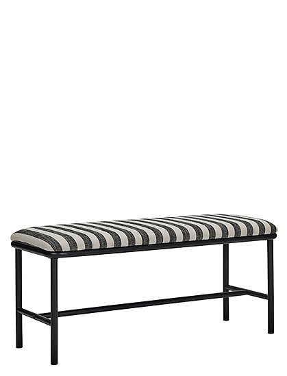 Gestalte dein Zimmer neu, denn mit dieser eleganten schwarz-weiß gestreiften Bank Toda von house doctor ist das ein Kinderspiel! Sie eignet sich ideal für den Eingangsbereich oder dein Schlafzimmer - und mit ihrem klaren Design bringt sie jede Menge frischen Wind in die Wohnung. Ihre minimalistischen Streifen und die Beine aus massivem Stahl fügen sich nahtlos in eine moderne Einrichtung und bieten sowohl ein elegantes Aussehen, als auch eine praktische Sitzgelegenheite in einem. Der schwarz-weiß gestreifte Bezug ist aus wertigem Polyesterstoff gewebt, Schaumstoff gepolstert und ruht auf schlichten, schwarz lackierten Stahlbeinen. Die hübsche Polsterbank wird zerlegt geliefert - aber keine Angst eine genaue Aufbauanleitung liegt bei. Belastbar ist die kleine Streifen-Schönheit mit bis zu 180 kg. Gönne dir Stil und Funktionalität in einem, mit dieser exquisiten Bank Toda von house doctor - und habe viel Spaß mit deiner Einrichtung.Details:
