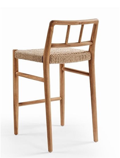 Maße (HxTxB):90 x 51 x 47 cmSitzhöhe: ca. 65 cm Material: Rahmen: HolzSitzfläche: Geflecht aus recycelter Kunstfaser