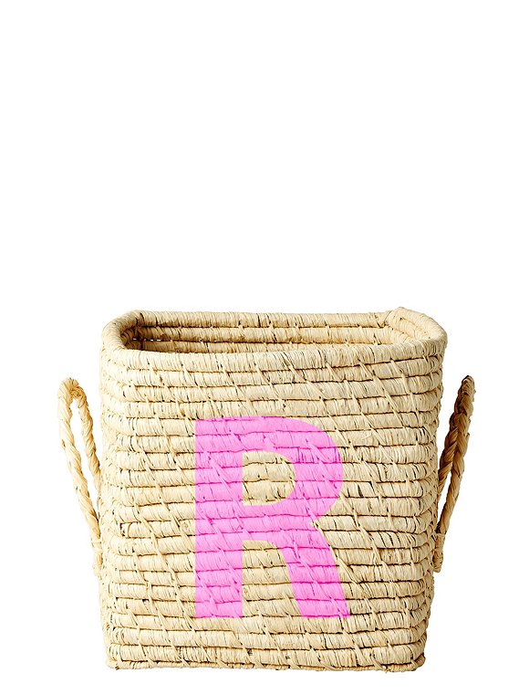 Wunderschöner kleiner Bastkorb in natur mit Buchstabe von rice. Der quadratische Korb im Format 20x20x20 cm wird aus Bastfasern gefertigt, welche aus Palmwedeln stammen. Alle rice-Raffiaprodukte kommen aus Madagaskar und werden von Hand hergestellt. Dank der seitlichen Henkel können die Kleinen die Körbe selbst tragen und ihre Sachen einsortieren. Und das Beste: Die klassischen Körbe sind in fast allen Buchstaben des Alphabets erhältlich. A wie Anton, B wie Ben, C wie Carla oder D wie Dinos, E wie Eisenbahn und L wie Lego. Die Flechtkörbe bieten eine prima Aufbewahrung für allerlei kleine Dinge, Spielzeug, Stifte, Deko, Kerzen, Servietten und vieles mehr. Vor allem zur Geburt eine tolle personalisierte Geschenkidee mit dem Anfangsbuchstaben des Babys. Der Buchstabe ist jeweils vorne in der abgebildeten Farbe aufgemalt und ist in jedem Kinderzimmer und oder einem Regal ein süßer Blickfang. Der Bastkorb in natur mit Buchstabe von rice ist unser Alltime Favorit - jetzt neu von A bis Z!