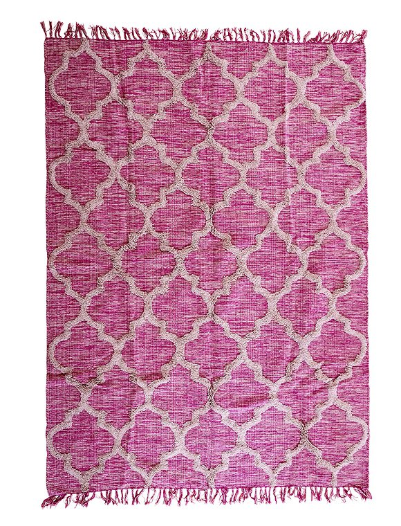 Handgemacht in Indien! Den wunderschönen Baumwoll Teppich mit Muster von rice bezeichnet das dänische Label selbst auch als Magic Carpet. In der Tat erinnern die Modelle in den leuchtenden Farben lavendel oder aubergine mit ihrem ornamentalen Rautenmuster auch ein wenig an die Geschichten aus Tausenduneine Nacht. Die hochwertig verarbeiteten Teppiche aus reiner Baumwolle werden von Hand in Indien gefertigt und haben süße farbige Fransen an den Kurzseiten und ein Muster in offwhite in einer erhöhten Struktur. So entsteht eine schöne Haptik und ein tolles Design. Du kannst wählen zwischen einem Teppich 120x200 cm in einem zartel Lavendelton und einem größeren Teppich 180x220 cm in einem dunkleren Aubergine Ton. Beide Farben sind dominierend in der fantastischen neuen Kollektion Viva La Vida! Wähle deinen Favoriten und werte deinen Wohnraum, den Eingangsbereich oder dein Schlafzimmer auf mit dem wundervollen Baumwoll Teppich mit Muster von rice. Wir wünschen viel Freude damit. Details:
