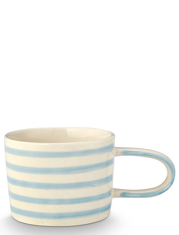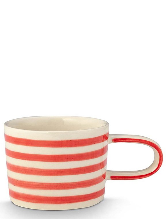 Absolut sweet! Der Becher mit Henkel und Streifen von vtwonen ist aus der neuen Geschirrserie des niederländischen Labels. Die Tasse ist in vier Farben erhältlich und hat ein Fassungsvermögen von 350 ml. Du kannst die Farben alle miteinander kombinieren und erhältst einen fröhlich gedeckten Tisch. Dabei findest du bei uns die Tasse - und Teller in zwei unterschiedlichen Größen. Das Geschirr aus Steingut ist Hand bemalt, die Streifen mit einem lockeren Pinselstrich gemalt. Hab viel Spaß an dem hübschen Geschirr und an dem Becher mit Henkel und Streifen von vtwonen. Details: