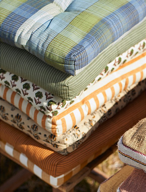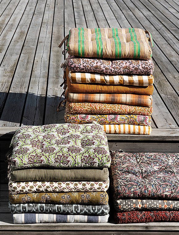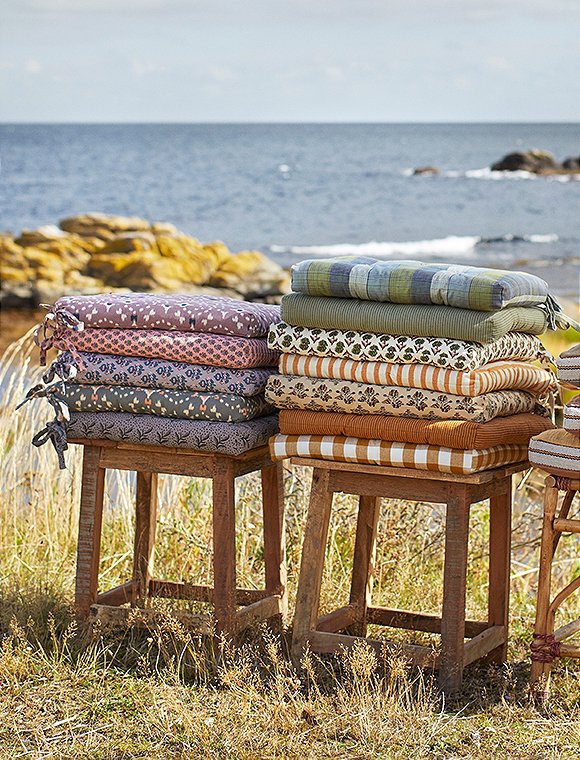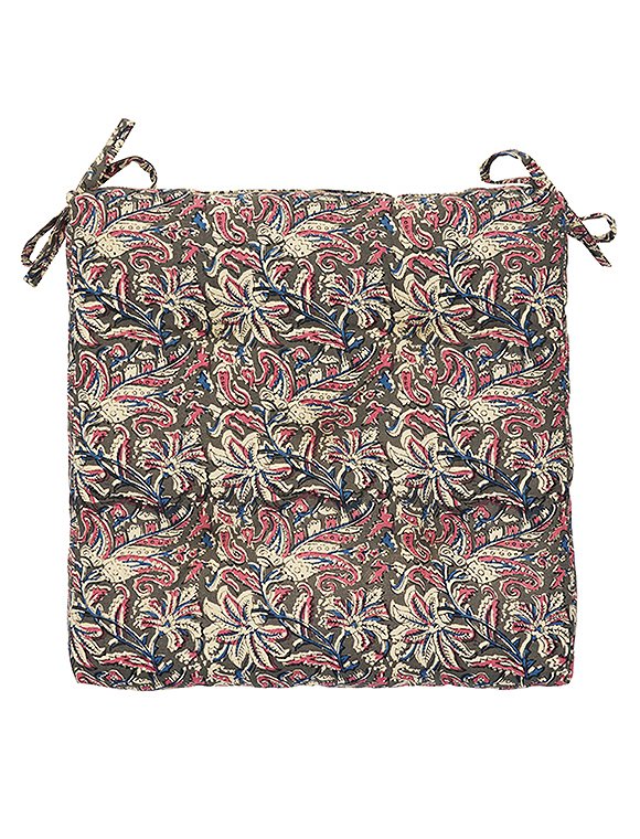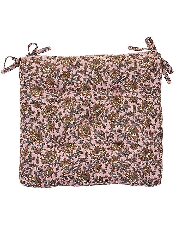 Macht einfach gute Laune - bedruckte Stuhlauflage aus Baumwolle von Madam Stoltz - inspiriert von indischen Blockdrucken. Die farbenfrohen Stuhlkissen machen deinen Stuhl oder den Boden bequemer - und schon wird dein Lieblingsplatz noch um einiges gemütlicher. Das Stuhlkissen ist vollflächig bedruckt und hat Bänder zum Befestigen an den Ecken. Die Füllung besteht aus Baumwollresten aus der Produktion. Dank Baumwolle, Baumwollfüllung und einem weichen, aber dennoch stützenden Gefühl polstert dieses Kissen mit einer Größe von 45 x 45 cm, harte Sitze schön sanft ab, während das florale Design harmonisch mit anderen Textilien im Raum verschmilzt. Der stilvolle Blumendruck in kräftigen und sanften Farben lässt sich wunderbar untereinander mixen und gibt deinem Zuhause eine sehr charmante, individuelle Note. Mit den hübschen Kissen bringst du Farbe und Komfort in deine Sitzecke - ganz egal ob drinnen oder draußen. Der Stoffdruck verleiht einer modernen als auch klassischen Einrichtungen eine ruhige und einladende Atmosphäre. Hab viele gemütliche Stunden mit der bedruckten Stuhlauflage aus Baumwolle von Madam Stoltz.Details: