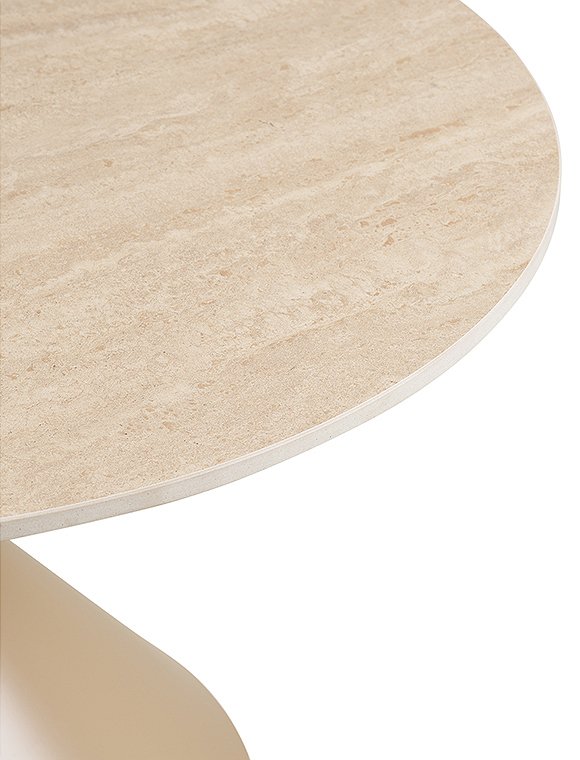 Elegantes Design in zwei Größen - der Beistelltisch Annecy aus Keramik und Metall von House Nordic verbindet skandinavische Klarheit mit einer ausdrucksstarken, skulpturalen Form. Sein elegantes Design macht ihn zu einem stilvollen Highlight in deinem Wohnraum – ob als dezenter Beistelltisch oder als moderner Coffee Table. Annecy ist in zwei Größen erhältlich: Als flacher Couchtisch/Coffee Table mit den Maßen 41ר70 cm oder als schmalerer Beistelltisch mit 56ר50 cm, ideal neben Sofa, Lesesessel oder Bett. So passt sich der Tisch flexibel deinen Wohnbedürfnissen an. Die Tischplatte aus Keramik überzeugt mit einer marmorähnlichen Travertin-Optik und verleiht dem Tisch eine natürliche, hochwertige Ausstrahlung. Getragen wird sie von einem nach unten konisch zulaufenden Tischbein aus Metall, das in einem glänzend schimmernden Sandton gehalten ist. Diese Kombination sorgt für einen edlen Kontrast und eine besonders elegante Wirkung. Diese Kombination sorgt für einen edlen Kontrast und eine besonders elegante Wirkung. Ob als Ablage für Bücher, Getränke oder dekorative Accessoires – Annecy ist funktional, stabil und zugleich ein echtes Designstatement. Der Tisch wird in zwei Paketen zu dir nach Hause geliefert und ist dank der beiliegenden Anleitung fix montiert. Mit dem Beistelltisch Annecy aus Keramik und Metall von House Nordic bringst du stilvolle Leichtigkeit und nordische Eleganz in dein Zuhause. Wir wünschen viel Freude damit.