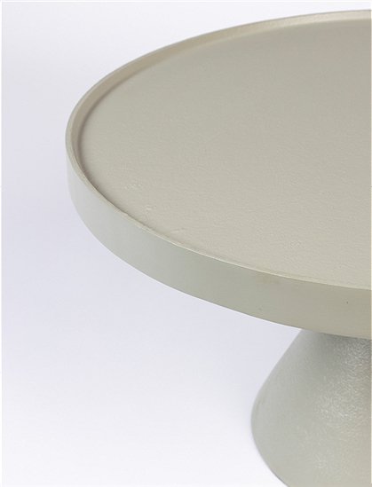 Kunstvoll. Der Beistelltisch Floss von Zuiver ist aus Aluminium in einem Guss gefertigt und mit einer farbigen Pulverbeschichtung versehen. Sie können zwischen weiß, grau und schwarz wählen. Alle drei Farben sind absolut zeitlos und sehr gut kombinierbar. Der kleine Tisch mit dem Pulverfinish ist eine hübsche Ergänzung zu jedem Samtsofa, Rattansessel oder Lounge Chair. Auch frei stehend ist das formschöne Design eine moderne Erscheinung, die mit dekorativen Accessoires oder einem schönen Strauß Blumen bestückt schnell zum Blickfang im Wohnbereich oder auf dem Flur wird. Die kreisrunde Tischplatte mit einem Durchmesser von 60 cm hat einen leicht erhöhten Rand und liegt auf einem kegelförmigen runden Fuß auf. Der Beistelltisch Floss von Zuiver wird fertig montiert geliefert und kann direkt nach Anlieferung seinen Platz in Ihrem Zuhause finden. Wir wünschen viel Freude mit dem charmanten Tisch.