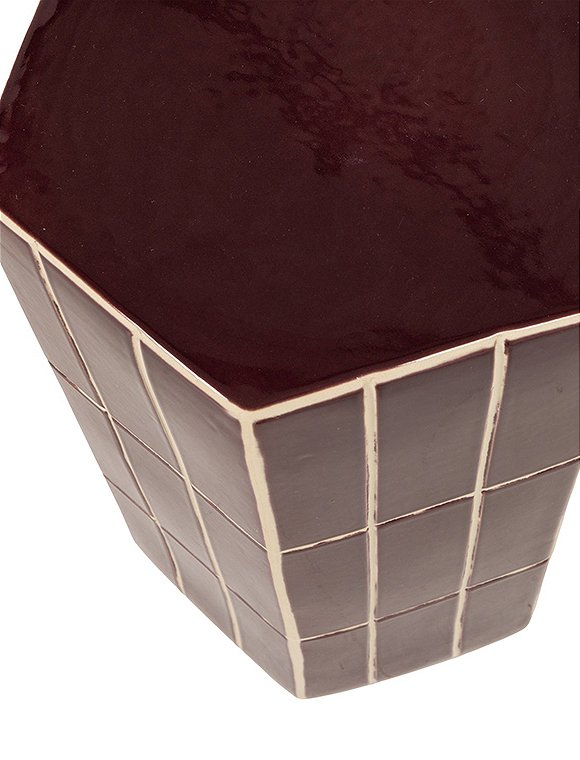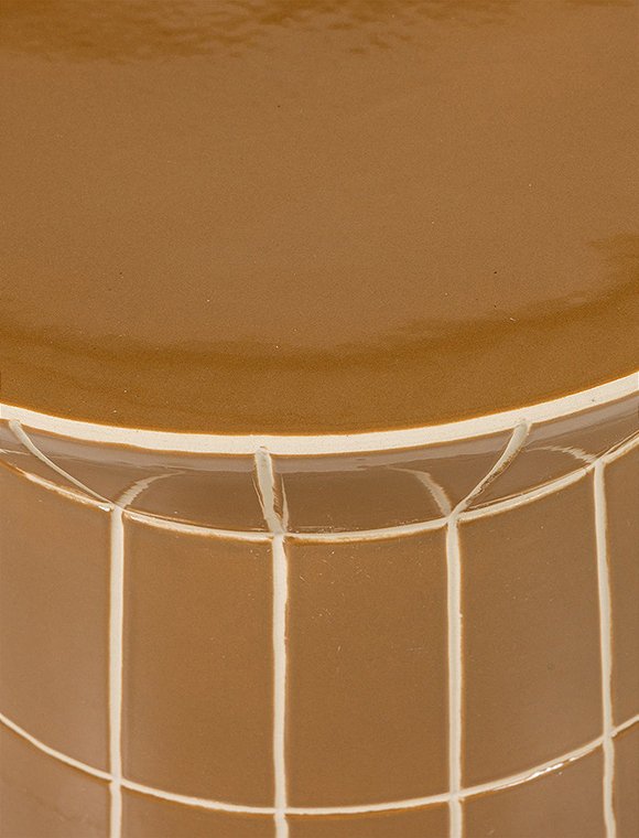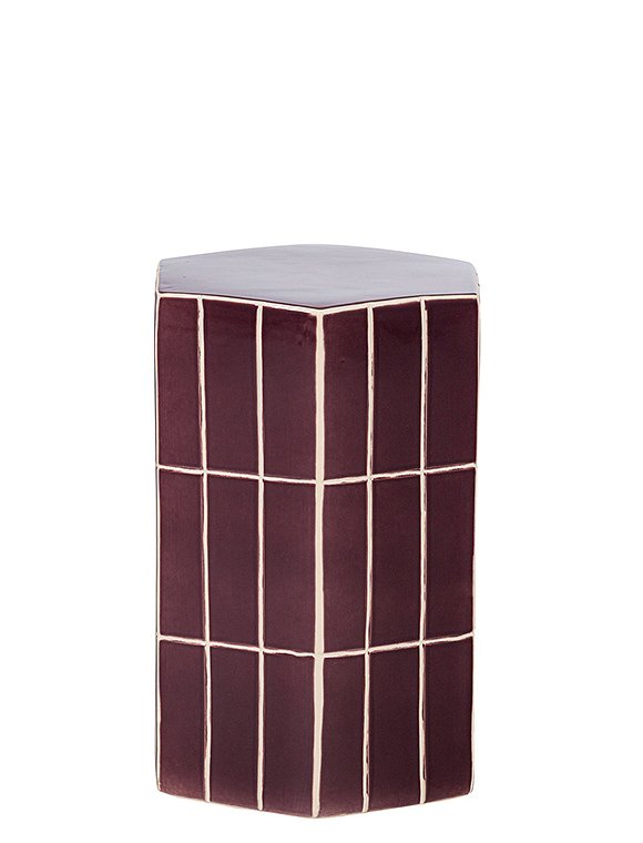 Fliesen Optik! Der dekorative Beistelltisch Plu aus Keramik von woood bringt sofort eine fröhliche Atmosphäre in dein Wohnzimmer. Das charaktervolle Design macht diesen Tisch zu mehr als nur einem funktionalen Möbelstück; er wird zu einem echten Statement-Piece in deiner Einrichtung. Der Tisch Plu ist in zwei verschiedenen Farben und Formaten erhältlich: Das charaktervolle Design mit der warmen, tiefen violetten Farbe hat die Maße 42x26x30 cm und passt perfekt neben dein Sofa, Sessel oder Bett. Das runde Modell im Format 30xØ38 cm verleiht mit seiner honiggelben Farbe jedem Raum Wärme und passt ebenso gut zu verschiedensten Wohnstilen. Das auffällige Design der Tische mit den eleganten Keramikkacheln weckt die Neugier deiner Freunde und Familie auf dieses schöne Möbelstück. Die glänzende Keramik ist ein wahrer Blickfang. Achtung! Ein schmaler Druckpunkt kann dazu führen, dass die Keramik reißt oder bricht, daher ist eine gleichmäßige Gewichtsverteilung erforderlich. Du darfst dich nicht auf diesen Artikel setzen oder stellen. Schaffe mit dem besonderen Beistelltisch Plu aus Keramik von woood eine gemütliche Ecke, in der du gerne Zeit verbringst. Das Modell wird fertig montiert geliefert. Details: