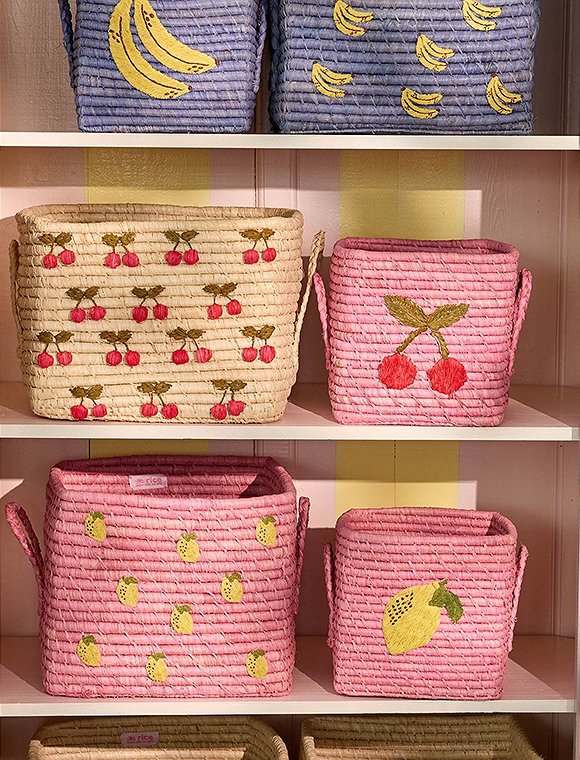 Bringe Farbe, Freude und ein bisschen Exotik in deinen Alltag – mit dem bestickten Bastkorb, 20x20x20 cm mit Henkeln von rice! Der handgefertigte Raffia-Korb ist nicht nur ein echter Hingucker, sondern auch wunderbar praktisch. Dank der flexiblen, stabilen Henkel kannst du ihn überallhin mitnehmen oder nach Lust und Laune umstellen. Du kannst zwischen drei liebevollen Designs wählen, die alle ihren ganz eigenen Charme haben: Naturfarben mit rotem Herz und goldenem Pfeil – das süßeste kleine Liebeskörbchen, perfekt für romantische Deko und ein echter Klassiker. Rosa mit Zitrone – frisch, fröhlich und der perfekte Farbtupfer für jedes Zimmer. Blau mit Banane – trendy, verspielt und einfach gute Laune pur. Mit seiner kompakten Größe ist der Korb ideal für all die kleinen Dinge, die sonst keinen festen Platz finden: Dekoartikel, Schals, Haaraccessoires, Kosmetik, Krimskrams, oder sogar Spielzeug. Besonders im Kinderzimmer sorgt er für Ordnung und gleichzeitig für eine zauberhafte, natürliche Deko. Aber auch im Flur, Bad oder Wohnzimmer macht er sich wunderbar als hübscher Ordnungshelfer. Jeder Korb wird von talentierten Kunsthandwerkern in Madagaskar aus natürlichem Raffia gefertigt – ein Material, das für seine schöne Struktur und leichte Flexibilität bekannt ist. Da Raffia ein Naturprodukt ist, können die Farben im Laufe der Zeit leicht verblassen, besonders bei direkter Sonne. Und vermeide bitte den Kontakt mit Wasser, damit die Farben nicht abfärben.  Der süße bestickte Bastkorb 20x20x20 cm mit Henkeln von rice ist ein charmantes, handgemachtes Lieblingsstück – perfekt, um deinem Zuhause noch mehr Persönlichkeit zu verleihen!