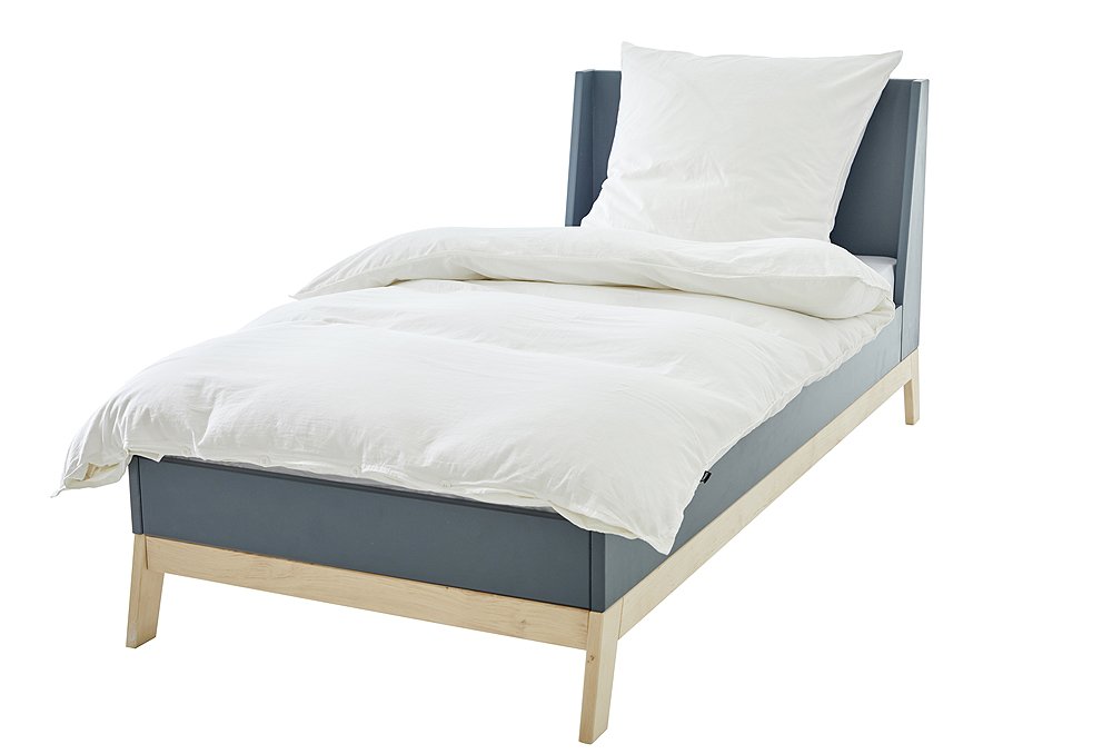 Sehr gemütliches Bett aus Erlenholz mit einem wunderbaren, hohen Kopfteil zum einkuscheln. Das Holzbett im Skandinavischen Design ist in vier unterschiedlichen Farben erhältlich - weiß, hellgrau, Vespa grün und anthrazit stehen hier zur Verfügung. Der Sockel des farbig lackierten Bettes mit ausgestellten Füßen, setzt sich charmant in Naturholz ab und bildet dabei einen spannenden und gelungenen Kontrast. Leicht lässt sich das schöne Jugendbett (Lattenrost/Matratze sind nicht im Lieferumfang enthalten), mit anderen Möbeln kombinieren - wer es lieber perfekt mag - ergänzt das Bett mit Möbeln aus der gleichen Kollektion. Später kann das hübsche Bett als Gästebett genutzt werden. Hohe Fertigungsqualität und zertifiziertes Erlenholz zeichnen die neue Kinderkollektion besonders aus. Wir wünschen Ihnen einen erholsamen Schlaf und viel Freude mit dem hübschen Bett aus Erlenholz.