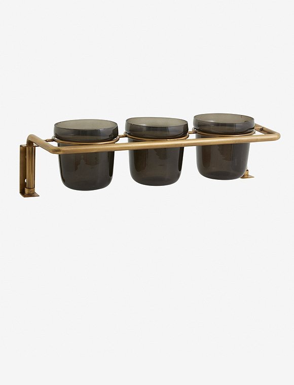 Was für eine tolle Idee! Der Blumentopf Fidra von Nordal ist Halter und Topf in einem und für die Wand gedacht. Drei hübsche Rauchgläser stehen für unterschiedliche Kräuter zur Verfügung und bilden eine tolle Einheit in der Küche. Der Metallhalter aus Messing beschichtetem Metall wird verdeckt an der Wand befestigt - die süßen Gläser halten in den dafür vorgesehenem Rahmen. Wer mag, kann die praktischen Gläser auch zweckentfremdet für seinen Arbeitsbereich nutzen und das schöne Design für seine Stifte und das Bürozubehör nutzen. Der schöne Entwurf des dänischen Labels lässt sich ganz wandelbar einsetzen. Daher wünschen wir dir viel Spaß mit dem Blumentopf Fidra von Nordal!