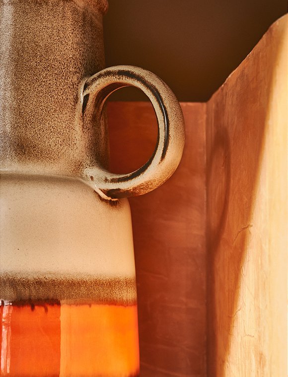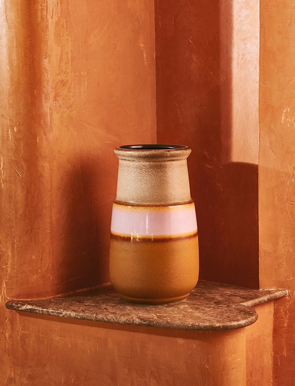Blickfang. Die wunderschöne Bodenvase aus Keramik von HKliving wertet dein Zuhause mit ihrer raffinierten Ästhetik und ihrem zeitlosen Design in frischen Farbkombinationen auf. Die aus hochwertiger Keramik gefertigte Vase hat eine robuste und dennoch raffinierte Silhouette mit einer strukturierten Oberfläche, die zum Berühren einlädt und ihrem Erscheinungsbild Tiefe verleiht. Die großzügige Größe dieser Bodenvase macht sie perfekt für die Aufnahme hoher Äste, gefiederter Gräser oder einfach als skulpturales Stück zur Ergänzung minimalistischer, Retro- oder ländlicher Innenräume. Du kannst zwischen drei verschiedenen Modellen in unterschiedlichen Größen wählen: Das Modell Caramel (44xØ27 cm) kombiniert einen mattbraunen Naturton mit glänzend glasiertem Flieder und Beige. Die Vase Lava (50,5x33x25,5 cm) hat einen Henkel und besticht mit einem Farbverlauf von beige, braun und orange, während der obere Teil matt abgesetzt ist und das Modell Honey (46xØ28 cm) erstrahlt in glänzenden Gelb- und Brauntönen. Platziere die große Bodenvase, um eine leere Ecke zu füllen, dein Wohnzimmer-Ensemble zu verankern oder ein einladendes Eingangs-Statement zu schaffen. Wer mag, kann auch verschiedene Designs miteinander kombinieren. Wir wünschen dir viel Freude beim Dekorieren der einzigartigen Bodenvase aus Keramik von HKliving.