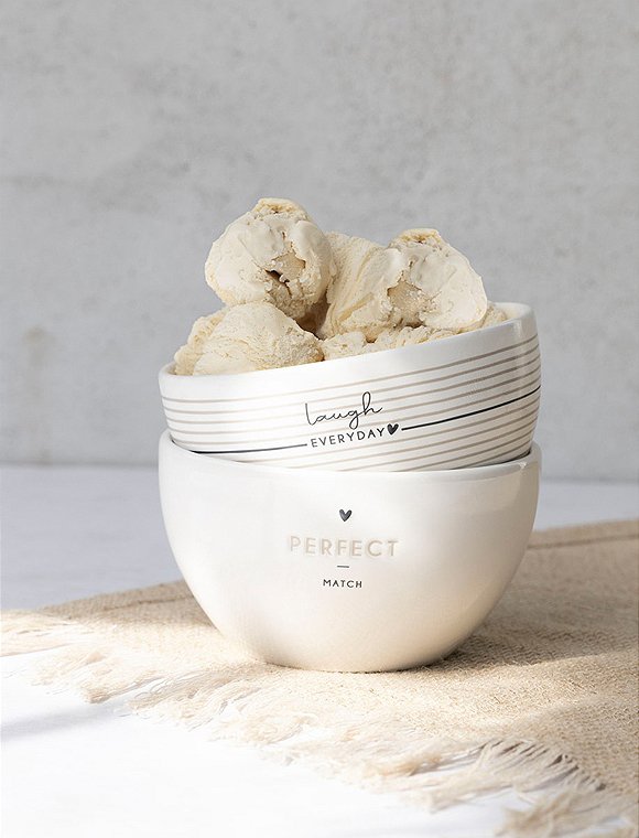 So sieht Liebe zum Essen aus... die Bowl Happy Food von Bastion Collections ist für Müsli, Salat und Kekse wie gemacht. Das feine Geschirr lässt sich mit der ganzen Kollektion prima kombinieren und wirkt dabei immer klar, modern und ausgesprochen fröhlich. Die Schale ist 7 x 13 cm groß, aus weiß lasierter Keramik und der Schriftzug ist von Hand bemalt. Das süße Geschirr ist ein toller Hingucker auf dem Tisch und sieht besonders edel mit weiß, grau oder schwarz aus. In Kombination auf Holz wirkt es außerordentlich charmant - ein paar Blümchen dazu und der Sommer ist da. Die Keramikbowl eignet sich für den täglichen Gebrauch, ebenso wie für die festliche Tafel - daher freuen wir uns, dass die Schale für die Spülmaschine prima geeignet ist. Die Bowl Happy Food von Bastion Collections ist ein tolles Wohnaccessoire für den täglichen Gebrauch - wir wünschen ihnen viel Freude damit!