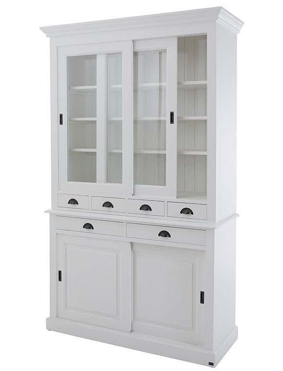 Stilbruch! Dieser Buffetschrank könnte im Landhaus genauso gut zur Geltung kommen, wie in einem modernen Haushalt - schön das es den tollen Schrank in 15 unterschiedlichen Farben gibt. Ein toller Schiebetürenschrank für Alles, was man gern herzeigt oder aber verstecken möchte. Dekorative Dinge wie z. Bsp. Geschirr, Gläser, Kochbücher werden sichtbar verstaut - Töpfe, Pfannen, Tupperdosen werden lieber unten untergebracht. In den kleinen, praktischen Schubladen kann Besteck und jede Menge Küchenkleinkram sortiert werden und "verschwinden". Der schöne Schrank bietet uns eine heimelige Note und jede Menge dekorativen Stauraum. Im Oberschrank hinter den Glasschiebetüren sind drei fest montierte Einlegeböden, im Unterschrank befindet sich hinter den Holzschiebetüren mit Kassettenfüllungen ein fest montierter Boden. Ein schönes Detail sind die eingelassenen Griffmulden in den Türen und die Muschelgriffen an den Schubladen. Der Schrank aus massiver Kiefer wird in zwei fertig montierten Teilen geliefert, so dass du diesen auch leicht in dein Haus bzw. in deinem Treppenhaus um die kurve bekommst. Zur Wahl stehen dir 15 wunderbare Farben - die mit einem feinen, sichtbaren Pinselstrich lackiert worden sind. Das Schöne, du kannst auch den Unterschrank separat bestellen. Bitte beachte, dass alle bunten Farben (ausgenommen weiß), eine Sonderanfertigung für dich sind - und somit vom Umtausch ausgeschlossen.