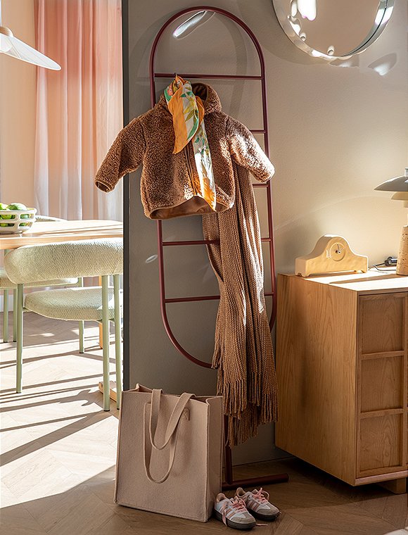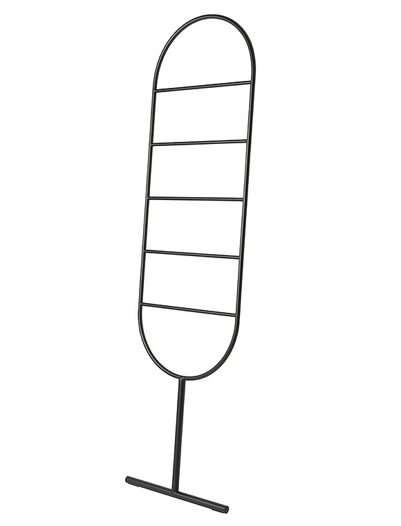 Moderner Hängeorganizer mit Charme! Mit der Dekoleiter Tess aus Metall von Zuiver holst du dir ein echtes Lieblingsstück nach Hause – stilvoll, praktisch und mit einer Extraportion Charakter. Mit ihren Maßen von 165,5x2,5x45 cm wirkt sie schlank und elegant, ohne sich aufzudrängen. Ob in klassischem Schwarz oder im ausdrucksstarken Marsala-Rot: Du entscheidest, ob sie sich dezent einfügt oder als stilvoller Farbakzent inszeniert wird. Fünf filigrane Querstreben verlaufen innerhalb des ovalen Metallrahmens und bieten dir jede Menge Möglichkeiten: perfekt für Kleiderbügel, S-Haken oder um Tücher, Decken und Accessoires ganz lässig darüberzulegen. So bleibt alles ordentlich und gleichzeitig dekorativ in Szene gesetzt. Die weich abgerundeten Formen und die pulverbeschichtete Oberfläche verleihen Tess einen minimalistischen Look mit sanfter Ausstrahlung. Das schlanke Metallgestell fügt sich mühelos in Flur, Schlafzimmer, Wohnzimmer oder Kinderzimmer ein und bringt eine ruhige, moderne Note in dein Interieur. Im Flur hält sie Jacken und Taschen griffbereit, im Schlafzimmer trägt sie Kleidung oder Plaids, im Bad deine Handtücher. Dank des dezenten T-Gestells steht sie stabil und frei im Raum – ganz ohne Bohren. Einfach aufstellen, dekorieren und genießen. Und wenn du Lust auf Veränderung hast, stellst du sie im Handumdrehen an einen neuen Lieblingsplatz – flexibel, unkompliziert und immer stilvoll. Mit ihrer modernen Silhouette vereint die Dekoleiter Tess aus Metall von Zuiver Funktionalität und Design auf besonders charmante Weise – ein stilvolles Statement, das deinem Zuhause das gewisse Extra verleiht.