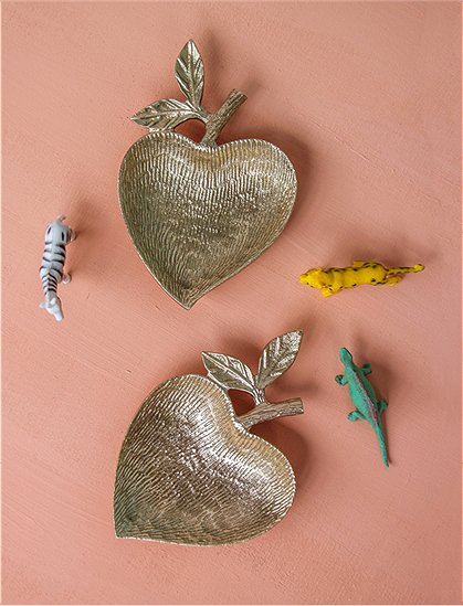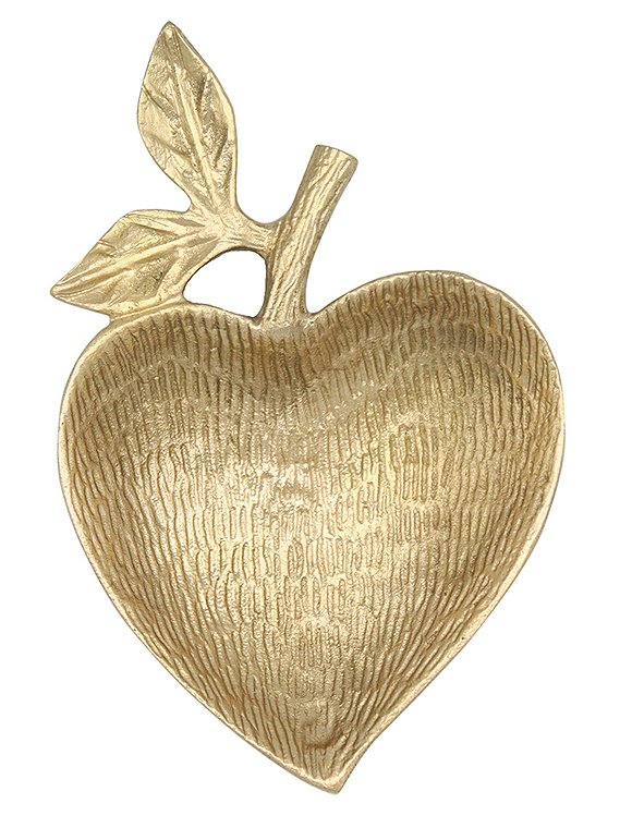 Sehr süßer Dekoteller von Doing Goods, tolles Mitbringsel für die Lieblingsfreundin oder natürlich zum selber behalten! Die kleine Platte ist toll für Schlüssel, Schmuck und Haarspangen und sieht so dekorativ aus, dass sie gerne auf dem Beistelltisch, Nachttisch oder der Konsole im Flur, Wohn-, Schlaf- und Badezimmer stehen kann. Das kleine, niedliche Wohnaccessoire besticht durch seine liebevolle Gestaltung - der Apfel ist in Herzform, er ist Hand gearbeitet und aus 100% recyceltem Messing gearbeitet - und ist jedes Mal ein kleines Unikat. Die feinen Teller werden in Indien unter fairen Bedingungen in kleinen Werkstätten hergestellt. Der Messingteller ist nicht Lebensmittel oder Spülmaschinen geeignet. Der süße Dekoteller von Doing Goods macht gute Laune und ist ein hübsches Accessoire für unser Zuhause - wir wünschen viel Freude damit!Details: