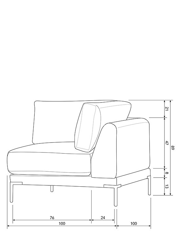 Maße (HxTxB):89 x 100 x 100 cmSitzhöhe: 44 cmSitzbreite: 57 cmSitztiefe: 57 cmArmlehnenbreite: 24 cmBeinhöhe: 13 cmBeinstärke: 2,5 cmBelastbarkeit: 90 kgGewicht: 47 kgMaterial: Bezug: Chenille aus Baumwolle/Viskose/Polyester, Martindale: 30.000in den Farben: Buttermelange, Rostmelange, Denim-Melange, Naturmelange, Mud-Melange.Bezug: Webstoff aus 100% Polyester, Martindale: 100.000in den Farben: Hellgrau, Sand, Taupe, Dunkelgrün, Dunkelgrau, Schokoladenbraun.Polster: Schaumstoff Rahmen: Holz Miteinander Verbinden: Die Couple-Elemente werden einzeln geliefert. Die Elemente lassen sich einfach mit den bereits montierten Krokodilverbindern verbinden.Pflegehinweis: Pflegehinweis Bei Flecken empfiehlt es sich, den Stoff mit einem leicht feuchten weißen Tuch und einem neutralen Möbelshampoo abzutupfen. Auf keinen Fall reiben! Hier kannst du die Pflegehinweise als PDF herunterladen Hinweise:Bei harten Böden solltest du Filzgleiter unter die Beine legen, dadurch werden Schäden am Boden vermieden. Der Artikel wird in einem Paket als einfacher Bausatz mit einer klaren Montageanleitung geliefert.