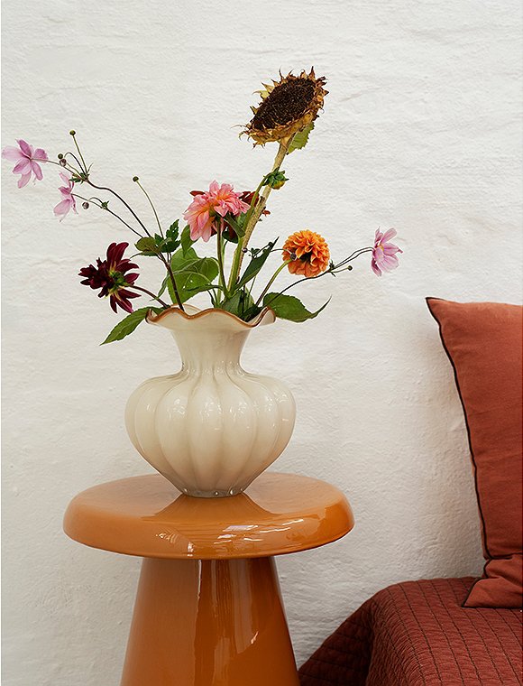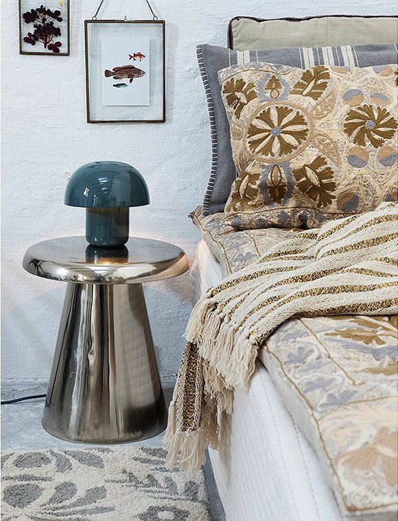 Moderner Emaille-Beistelltisch von Madam Stoltz der jedem Raum einen ruhigen, industriellen Charme verleiht. Sein modernes Metalldesign und die subtile, skulpturale Anmutung sind von indischen Werkstätten inspiriert. Der Metalltisch besticht durch sein modernes Design mit industriellem Flair. Gefertigt aus Eisen und handlackiert mit hochglänzendem Stahl-Emaille, ist er ein skulpturaler Blickfang. Weiche Formen treffen auf harte Materialien. Platziere mehrere Tische vor dem Sofa oder stelle einen einzelnen Tisch mit einer Pflanze oder einer kleinen Lampe an einen anderen Ort in deinem Zuhause. Jedes Stück wirkt ruhig und zugleich funktional und bietet dir eine kompakte Ablagefläche für den Alltag, die sich leicht im Haus bewegen lässt. Der Tisch ist handgefertigte Emaille-Handwerkskunst. Das Herzstück dieses Emaille-Beistelltisches ist robustes Eisen, das sorgfältig zu einer stabilen, ausgewogenen Form verarbeitet wurde. Jeder Emaille-Beistelltisch ist handemailliert, wodurch die hochglänzende Oberfläche kleine Unregelmäßigkeiten aufweist, die ihm eine individuelle Note verleihen. Die glatte Oberfläche reflektiert das Licht sanft und setzt neben Sofa, Lesesessel oder Bett einen dezenten Akzent. Mit seiner bescheidenen Stellfläche und seinem soliden Gewicht ist dieser Emaille-Beistelltisch von Madam Stoltz praktisch für den täglichen Gebrauch und gleichzeitig raffiniert genug, um auch als einzelnes skulpturales Akzentstück zu wirken.Details: