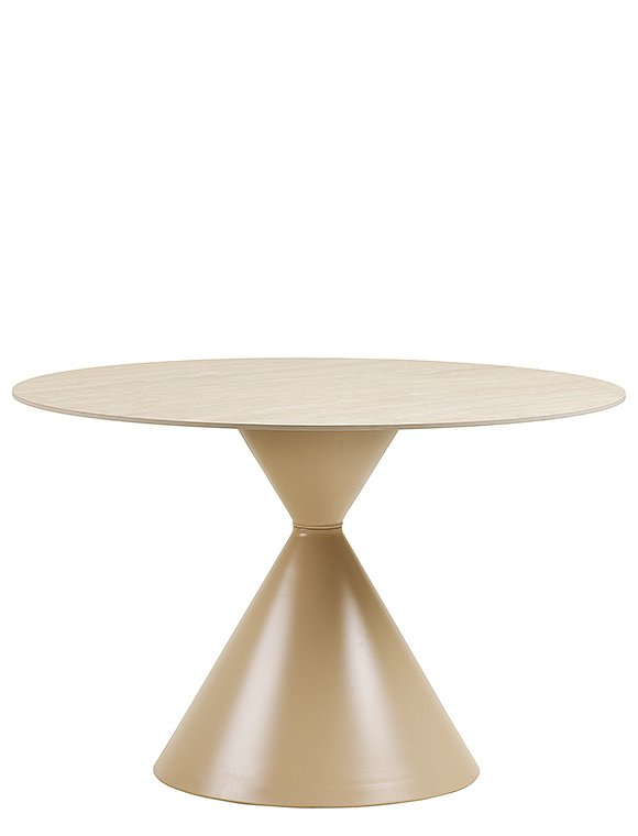 Eleganter Esstisch Annecy, 76xØ120 cm von House Nordic. Der runde Tisch aus Keramik und Metall von House Nordic verbindet skandinavische Klarheit mit einer ausdrucksstarken, skulpturalen Form. Sein elegantes Design macht ihn zu einem stilvollen Highlight in deinem Esszimmer oder auch in der Küche. Annecy hat einen Durchmesser von 120 cm bietet bis zu vier Personen Platz. Seine Tischplatte aus Keramik überzeugt mit einer marmorähnlichen Travertin-Optik und verleiht dem Tisch eine natürliche, hochwertige Ausstrahlung. Getragen wird sie von einem nach unten konisch zulaufendem Tischbein aus Metall, das in einem glänzend schimmernden Sandton gehalten ist. Diese Kombination sorgt für einen edlen Kontrast und eine besonders elegante Wirkung. Annecy ist funktional, stabil und zugleich ein echtes Designstatement. Entdecke auch den passenden Beistelltisch in zwei verschiedenen Größen in unserem Sortiment. Der Tisch wird in zwei Paketen zu dir nach Hause geliefert und ist dank der beiliegenden Anleitung fix montiert. Mit dem Esstisch Annecy, 76xØ120 cm von House Nordic bringst du stilvolle Leichtigkeit und nordische Eleganz in dein Zuhause. Wir wünschen viel Freude damit.Details: