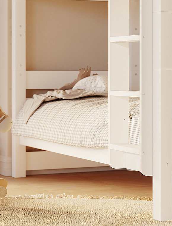 Das obere Bett beträgt 129,6 cm. Der Abstand zwischen der Unter- und Oberseite des Bettes beträgt 90 cm. Die meisten Erwachsenen (ca. 182 cm groß) können dort aufrecht sitzen.
