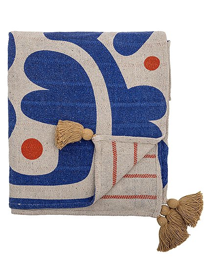 Die Eviaya Decke von Bloomingville ist eine dekorative Decke mit einem Muster auf jeder Seite. Die Vorderseite zeigt ein feines Muster in Blau- und Rottönen, das einen schönen Kontrast schafft. Die Rückseite ist mit gewebten roten Streifen verziert. In jeder Ecke befinden sich dekorative Quasten in gelblicher Farbe. Die Decke besteht aus recycelten Materialien, und die weiche Textur macht sie perfekt für gemütliche Stunden auf dem Sofa. Die Decke ist 130 x 160 cm groß und kann bei 40 Grad schonend in der Maschine gewaschen werden. Hab viel Spaß mit der Eviaya Decke von Bloomingville und kuschel dich gemütlich ein!Details: