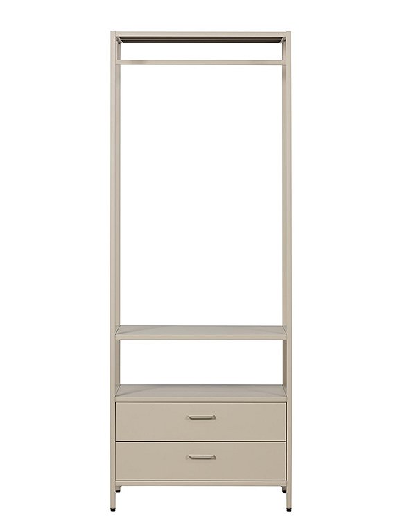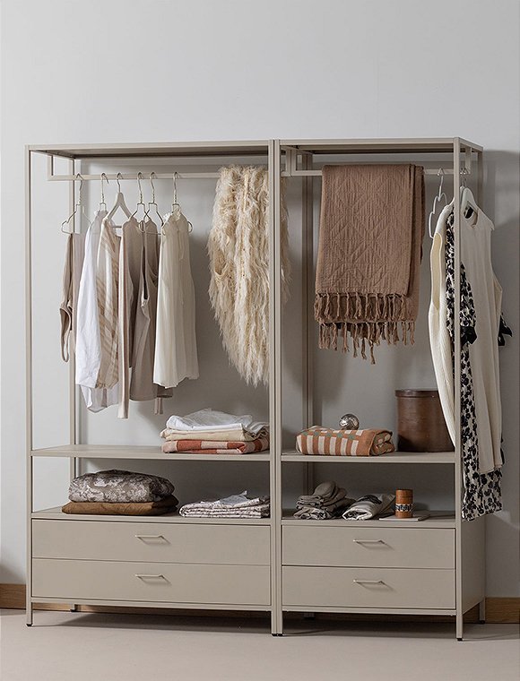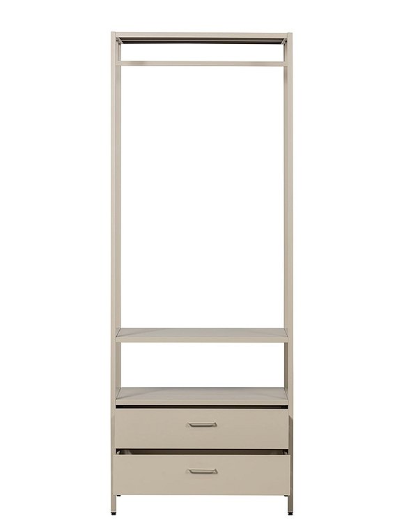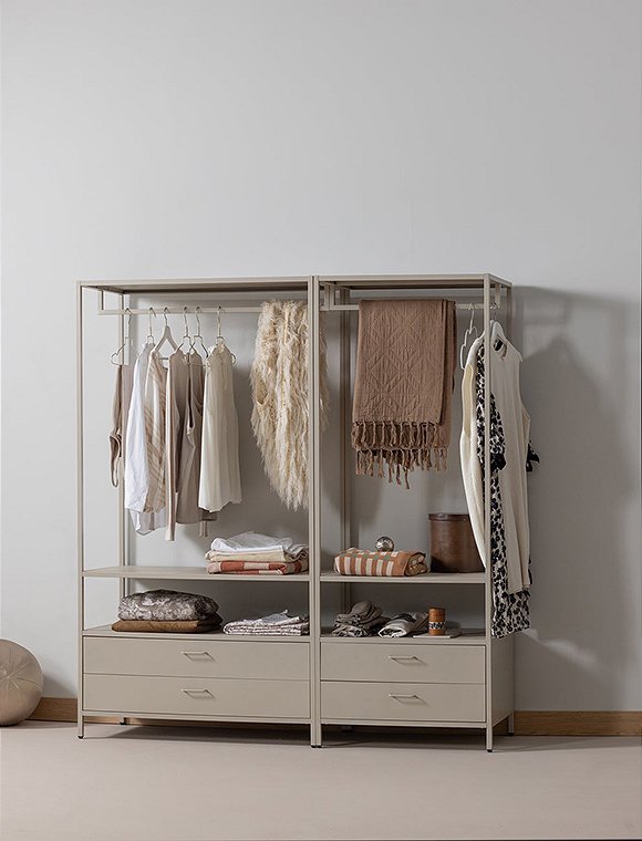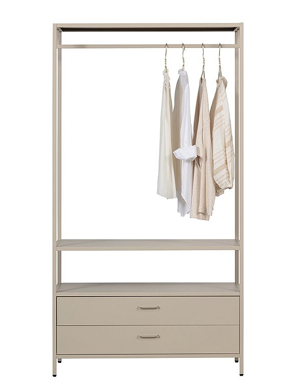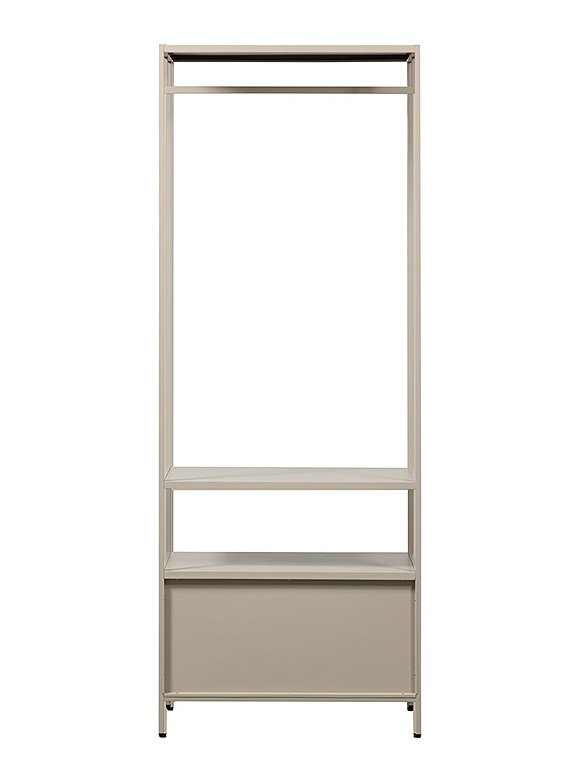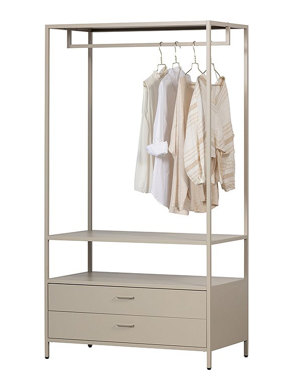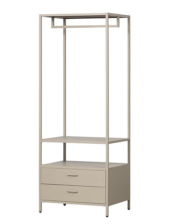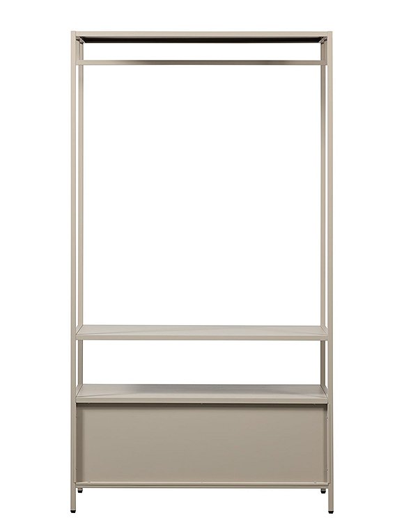 Ferris ist ein offener Kleiderschrank von woood der in zwei unterschiedlichen Breiten erhältlich ist. Mit dieser offenen Lösung kannst du deinen Stauraum beliebig erweitern und schaffst schnell jede Menge Platz. Mit der funktionalen Garderobe lässt du garantiert keine Kleidung mehr herumliegen. Und Dank der offenen Kleiderstange behältst du alle deine Lieblingsoutfits im Blick. Der Schrank verfügt über zwei geräumige Schubladen, die sich perfekt für die Aufbewahrung von Unterwäsche, Accessoires oder anderen Kleidungsstücken eignen. Das stilvolle Design passt in jedes Schlafzimmer oder in einen begehbaren Kleiderschrank und bietet wirklich viel, viel Stauraum! Der Schrank ist 185 x 54 x70/120 cm groß, wird zerlegt geliefert und ist aus pulverbeschichtetem Metall hergestellt. Ferris der offene Kleiderschrank von woood ist ein gelungener Entwurf des niederländischen Labels. Details: