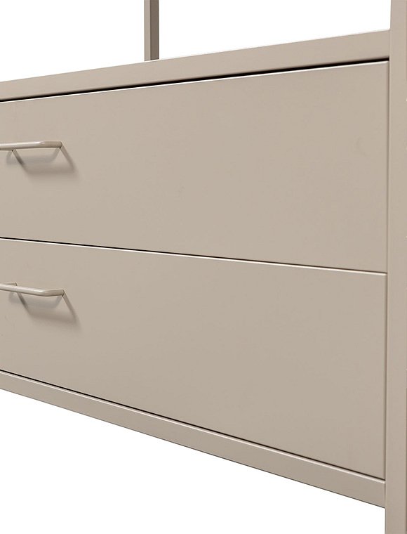 Maße (HxTxB): 185 x 54 x 70 cm Größe der Schubladen: 16,2 x 44 x 63 cmGröße des mittleren Fachs: 21,3 x 54 x 70 cmGröße des Hängefachs: 116 x 54 x 70 cmLänge des Hängeregals: 65,8 cmHöhe des Fußes: 9,5 cm Gewicht: 25 kg185 x 54 x 100 cmGröße der Schubladen: 16,2 x 44 x 93 cm Größe des mittleren Fachs: 21,3 x 54 x 100 cmGröße des Hängefachs: 116 x 54 x 100 cm Länge des Hängeregals: 65,8 cm Höhe des Fußes: 9,5 cm Gewicht: 36 kgGewicht pro Fachboden: 30 kg Gewicht pro Stange: 26 kg Ladegewicht pro Schublade: 14 kgMaterial: MetallHinweis:Alle Metalle in unserer Kollektion wurden gründlich behandelt und müssen nicht nachbehandelt werden. Behandeltes Metall ist mit einem leicht feuchten Tuch leicht zu reinigen, das anschließende Trocknen der Oberfläche sorgt für ein schlierenfreies Ergebnis. LieferungDer Artikel wird in einem Paket geliefert und lässt sich anhand der mitgelieferten Montageanleitung leicht zusammenbauen. Um harte Böden zu schützen, lege bitte Filzgleiter auf die Unterseite der Beine.