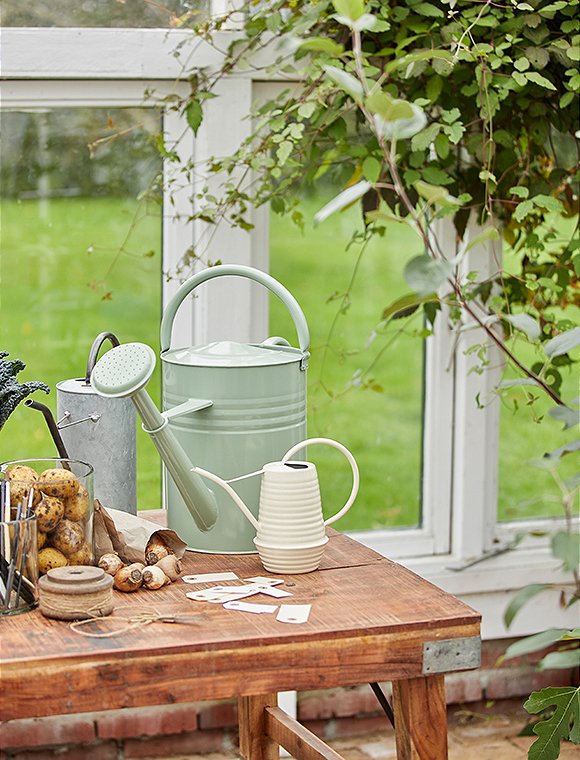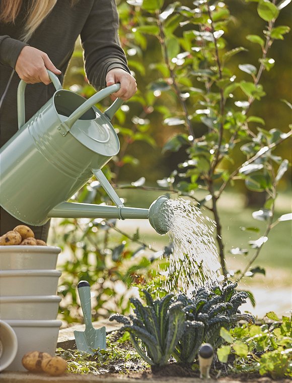 Mit der Gießkanne, 11 Liter aus robustem Metall von Ib Laursen machst du deinen Pflanzen eine echte Freude. Dank der beiden Henkel liegt sie jederzeit gut in der Hand und sorgt für eine perfekte Balance, selbst wenn du sie bis zum Rand füllst. So kannst du auch größere Wassermengen mühelos tragen und präzise ausgießen. Der abnehmbare Brausekopf im klassischen Stil verteilt das Wasser weich und gleichmäßig, sodass empfindliche Blätter und junge Triebe sanft versorgt werden. Du kannst zwischen zwei dezenten Farbtönen wählen, Hellgrün oder Grau Natur, die sich harmonisch in jede Umgebung einfügen. Ob im Garten, auf dem Balkon, der Terrasse oder sogar im kleinen Stadtgarten – diese Gießkanne begleitet dich überall dort, wo du Grün pflegen möchtest. Sie eignet sich ideal zum Bewässern von Blumenbeeten, Kräutertöpfen, Kübelpflanzen oder auch frisch ausgesäten Bereichen, die eine besonders feine Bewässerung benötigen. Die stabile Metallkonstruktion sorgt dafür, dass dir die Gießkanne lange treu bleibt, während ihr zeitloses Design jeden Pflanzplatz ein Stück schöner macht. Suche dir einfach die Farbe aus, die am besten zu dir und deinem grünen Lieblingsplatz passt. Die Gießkanne, 11 Liter aus Metall von Ib Laursen hat die Maße 44x22x59 cm. Auf den grünen Daumen!Details: