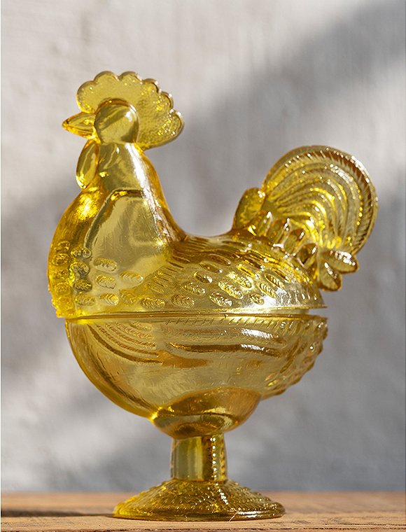 Charmante Glashuhn Schale von Madam Stoltz für ein verspieltes Zuhause. Diese Dose in Hühnerform bringt mit ihrer vom Landleben inspirierten Form und dem dekorativen Design eine unbeschwerte Note auf jeden Tisch. Sie eignet sich zum Servieren oder auch für ein kleines Versteckspiel mit den beliebtesten Süßigkeiten der Saison. Die zarte Hühnersilhouette schafft eine gemütliche Atmosphäre, während das warme Bernsteinglas im Tageslicht oder Kerzenlicht sanft leuchtet. Ob gefüllt mit Nüssen, Leckereien oder kleinen Schätzen – diese Glasschale in Hühnerform lädt zum täglichen Gebrauch ein und zaubert Gästen jeden Alters ein Lächeln ins Gesicht. Auch leer macht sie auf einem Regal oder einer Fensterbank eine gute Figur und wird so zu einer kleinen, skulpturalen Erinnerung an die kleinen Freuden des Landlebens. Hab viel Vergnügen an der charmanten Glashuhn Schale von Madam Stoltz.Details: