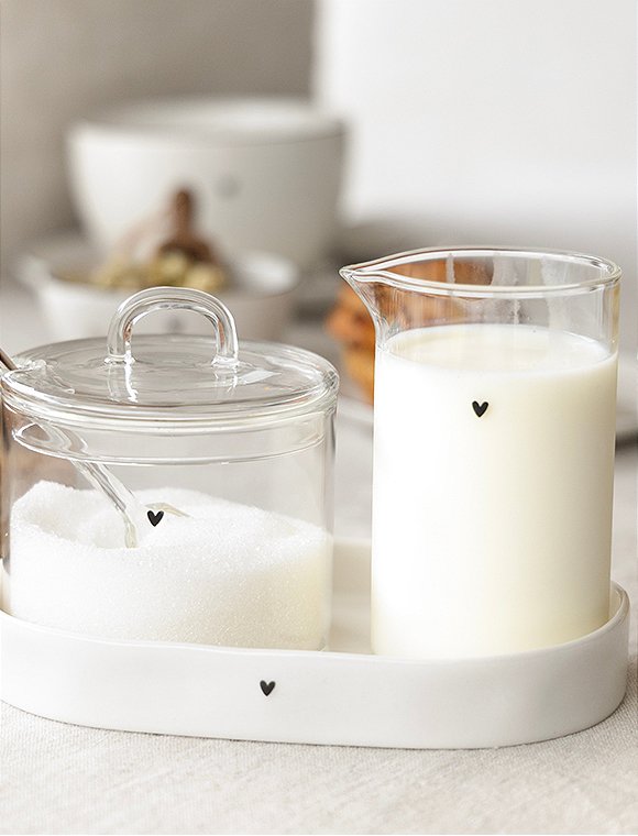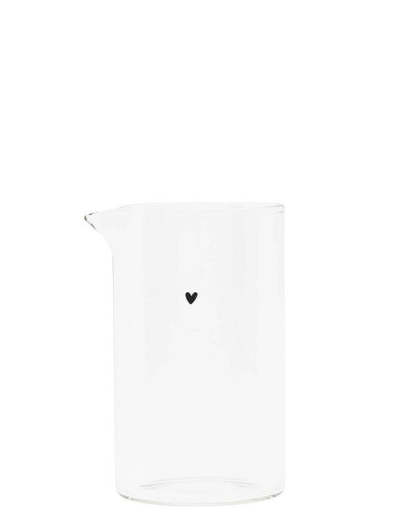 Der kleine Glaskrug, 10xØ6 cm aus Glas von Bastion Collection bringt liebevolle Details und zeitlose Leichtigkeit auf deinen Tisch. Mit seinem kompakten Maß von 10 cm Höhe und 6 cm Durchmesser ist das zarte Glaskännchen perfekt geeignet, um Milch stilvoll zu Tee oder Kaffee zu servieren. Das klare Glas wirkt leicht und elegant, während das allseits beliebte kleine schwarze Herz dem Design eine warme, persönliche Note verleiht – dezent, charmant und einfach typisch Bastion Collection. Ob beim gemütlichen Frühstück, der Kaffeepause am Nachmittag oder wenn Gäste kommen: Dieses Mini-Glaskännchen ist nicht nur praktisch, sondern auch ein echter Hingucker. Besonders schön lässt es sich mit dem passenden Zuckertopf aus Glas kombinieren, wozu ein passender Glaslöffel erhältlich ist und das Set wunderbar abrundet. Du kannst den Glaskrug hervorragend mit der Glas-Serie von Bastion Collection kombinieren, er harmoniert aber ebenso schön mit der klassischen weißen Keramik-Serie. Das schwarze Herz verbindet alles zu einem stimmigen Gesamtbild und sorgt für den unverwechselbaren Bastion-Charakter. Der schlichte Glaskrug,10xØ6 cm aus Glas von Bastion Collections ist ein kleines Lieblingsstück, das Funktionalität und Design vereint und deinem Tisch eine Extraportion Gemütlichkeit schenkt.Details: