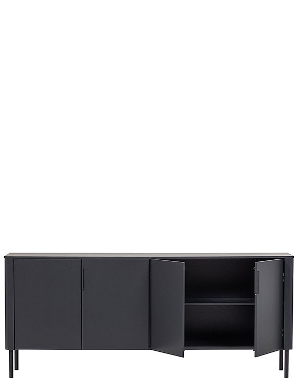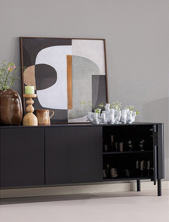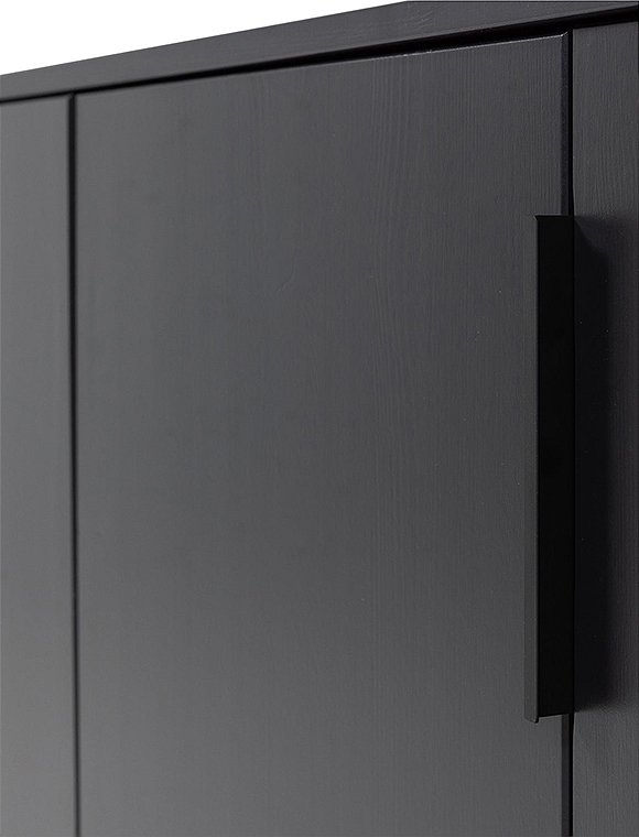 Schlicht, modern und funktional. Die Gunnar Kommode 200 cm aus Kiefer von woood ist ein stilvolles Aufbewahrungsmöbel mit unendlichen Möglichkeiten. Dank der vier Türen mit dezenten Griffen kannst du all deine Sachen mühelos außer Sichtweite verstauen, während die geraden Linien und die raffinierte Verarbeitung Ruhe und Eleganz ausstrahlen. Das Sideboard ist aus massivem Kiefernholz gefertigt und in Mattschwarz oder Schlammfarben lackiert. Hinter den Türen befindet sich ein großzügiges Staufach mit einem Einlegeboden, ideal für Geschirr, Bücher oder Wohnaccessoires. Hab viel Spaß an der Gunnar Kommode 200 cm aus Kiefer von woood.Details:
