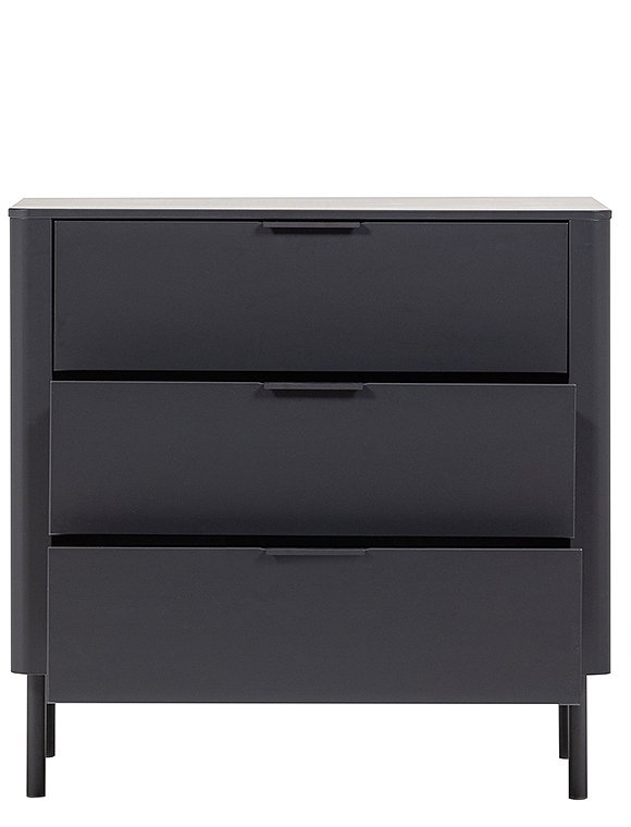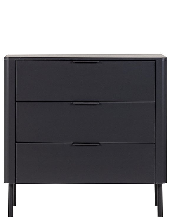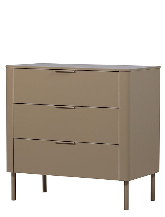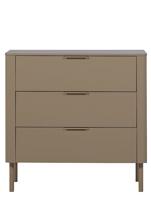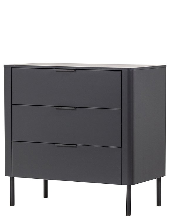 Die Gunnar Kommode von woood bietet eine stilvolle Lösung für zusätzlichen Stauraum. Die drei geräumigen Schubladen mit Soft-Close-Verschluss und dezenten Griffen erleichtern die Aufbewahrung von Kleidung oder Accessoires. Dank der abgerundeten Ecken, der modernen Verarbeitung und der matten Lackierung ist die Kommode nicht nur funktional, sondern auch eine Bereicherung für jedes Interieur. Die Kommode Gunnar ist aus massivem Kiefernholz gefertigt, hat ein zeitloses Aussehen und ist in zwei Farben erhältlich. Dabei ist das Kiefernholz geschliffen und mit einer schönen, deckenden Lackschicht versehen. Kiefernholz zeichnet sich durch sichtbare Flammen- und Maserungen aus. Hab viel Spaß an der Gunnar Kommode von woood - und genieße die Ordnung.