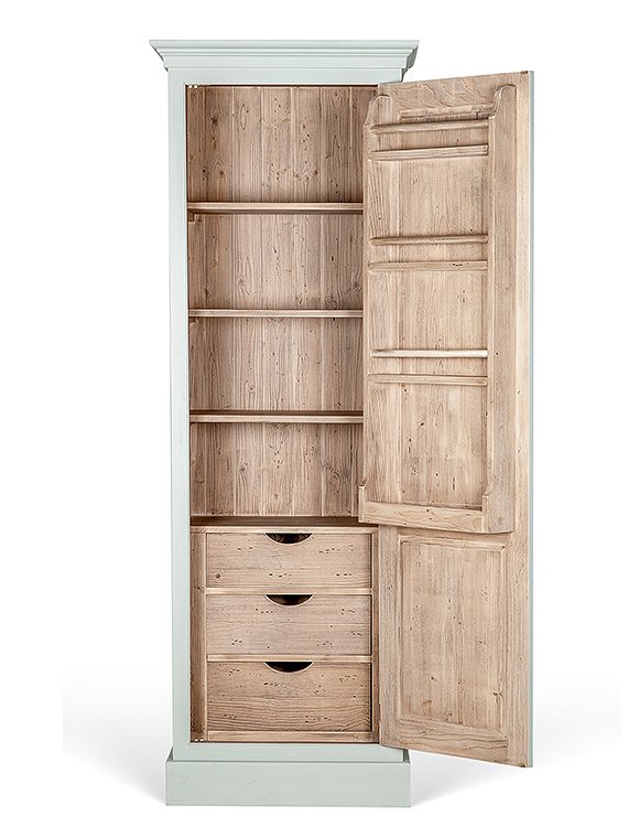 Einfach schön! Dieser Gustave Küchenschrank von car Möbel im Landhausstil ist in vielen unterschiedlichen Farben erhältlich - er ist aus massivem Kiefernholz gearbeitet, ist 220 x 57 x 77 cm groß und bietet eine perfekte Raumaufteilung. Hinter der hochwertig gearbeiteten Tür mit Kassettenoptik bieten drei Schubladen und drei Einlegeböden viel Raum für deine Küchenutensilien. In der Türinnenseite sind zusätzlich drei schmale Regale integriert die für perfekten Komfort sorgen. Das hübsche Schrankmöbel bringt Ruhe und einen Hauch Nostalgie in deine Küche. Ganz gleich wo - das schlicht schöne Design mit ländlichem Charme zieht immer erst einmal alle Blicke auf sich. Bei der Oberfläche hast du die Wahl zwischen vielen wunderbar gestrichenen (sichtbarer Pinselstrich) Farben - innen wie außen gleich. Wer etwas mehr Landhausstil bevorzugt, verliebt sich sicher in den pistazienfarbenen Schrank mit natürlicher Innenraum Gestaltung. Hab viel Spaß an dem gut durchdachten Gustave Küchenschrank von car Möbel - der in Europa gefertigt und montiert geliefert wird.