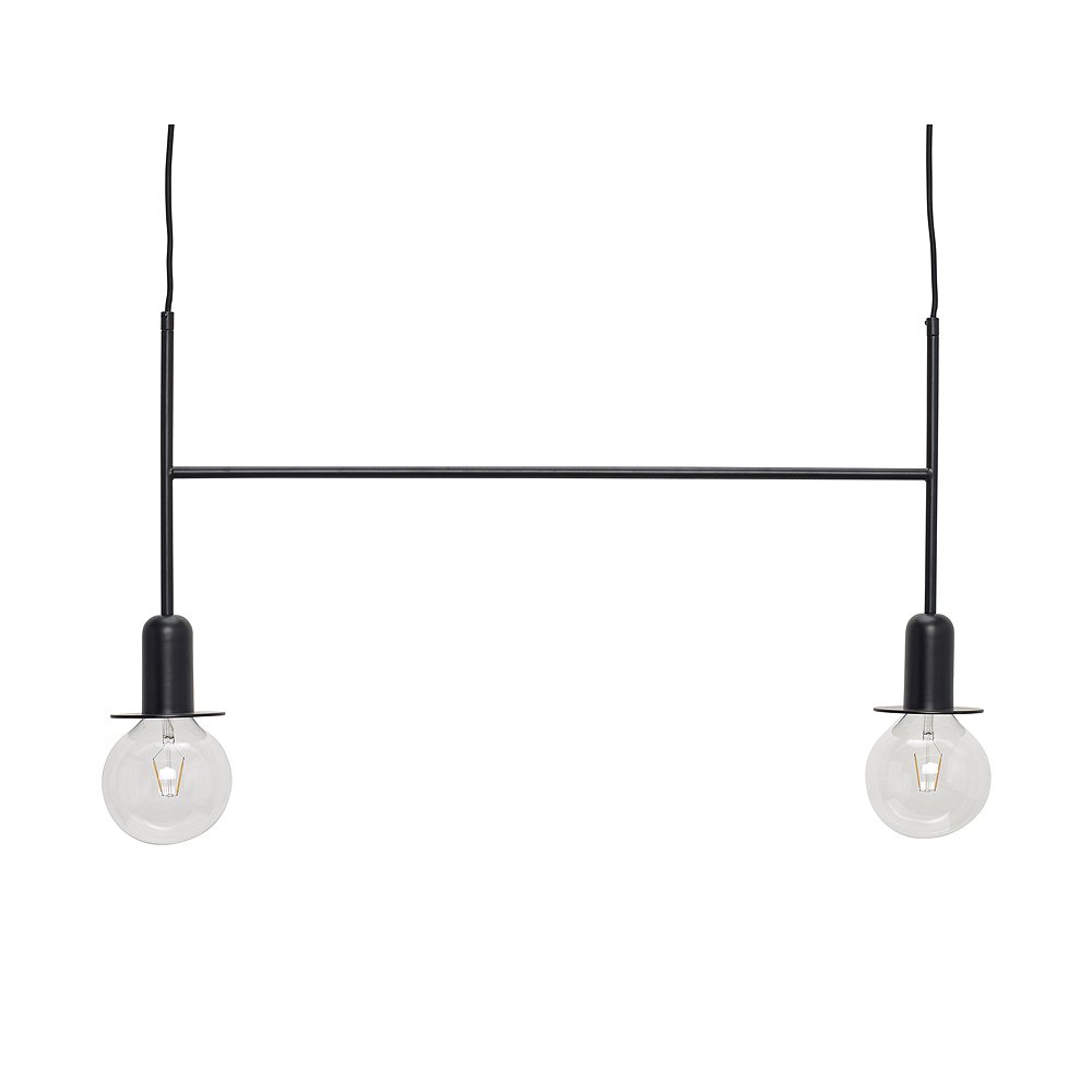Tolle Leuchte mit 2 Fassungen von HÜBSCH Interior. Die schöne Hängeleuchte eignet sich perfekt über dem Küchentresen, Ess- oder Arbeitstisch und gibt ihr schmeichelndes Licht in den gesamten Raum. Je nach Helligkeit der Leuchtmittel ist von gemütlich bis zum ordentlichen Arbeitslicht alles machbar. Die Lampe gibt es in schwarz und gold und wird an der Decke an zwei Punkten befestigt. Die Hängelampe hat ein schwarzes Textilkabel und wird inklusive Leuchtmittel und Baldachin geliefert. In der Höhe misst die schlichte Lampe 40 cm in der Breite 86 cm, und ist in goldglänzend oder seidenmatt schwarz lackiertem Metall erhältlich. Die Leuchte mit 2 Fassungen von HÜBSCH Interior wird montiert geliefert - wir wünschen Ihnen viel Freude damit!Details: