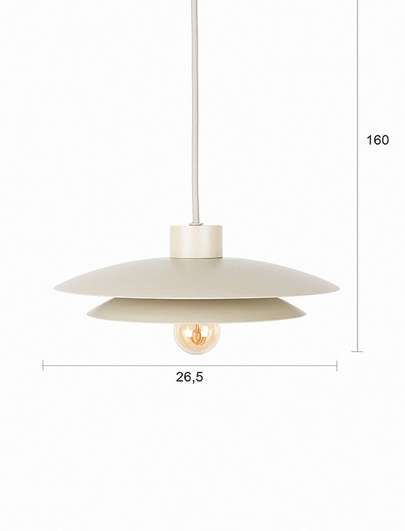 Retro Vibes! Die Hängeleuchte Wubbo von White Label Living zaubert mit ihrem ikonischen Design einen Hauch Vintage-Stil in dein Zuhause. Gefertigt aus beigem Metall überzeugt sie mit ihrer charakteristischen, mehrlagigen Schirmform und einer klaren, zeitlosen Silhouette. Mit einem Durchmesser von Ø26,5 cm und einer insgesamten Länge von bis zu 160 cm lässt sich Wubbo flexibel platzieren – perfekt über dem runden Esstisch, aber auch schön auf dem Flur oder über einer Konsole. Wubbo setzt ein stilvolles Statement und fügt sich harmonisch in unterschiedliche Wohnstile ein. Der doppellagige Metallschirm sorgt für ein angenehm warmes und sanft gestreutes Licht. So entsteht eine gemütliche Atmosphäre im Wohnraum oder Schlafzimmer – ideal für entspannte Abende. Wubbo ist mit einer E27-Fassung ausgestattet und für ein Leuchtmittel mit max. 5 LED-Watt geeignet. Das Leuchtmittel ist nicht im Lieferumfang enthalten. Die Hängeleuchte Wubbo von White Label Living verbindet Vintage-Charme mit modernem Wohngefühl und sorgt zuverlässig für stimmungsvolle Beleuchtung. Wubbo ist auch als Tischleuchte in unserem Sortiment erhältlich.