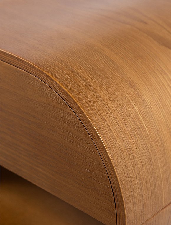 braun: MDF dient als Basis für Holzfurnier. Jede furnierte MDF-Platte wird in unserer eigenen Fabrik mit einer transparenten Schutzschicht versehen. Die sichtbare Maserung verleiht dem Möbelstück eine authentische Holzoptik. Das Material ist FSC® zertifiziert.