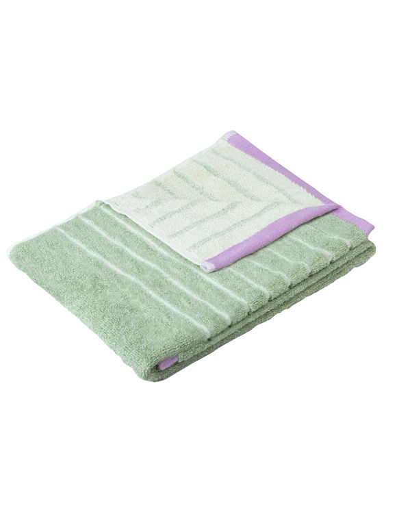 Voll Retro! Schönes, dickes, weiches Handtuch von Hübsch Interior mit einem tollen Streifenmuster am unteren Rand. Auf der einen Seite in hellen Farbtönen gehalten - auf der anderen in kräftigeren Farben von Streifen durchzogen gewebt, enden die kurzen Seiten mit einem kräftigem Farbabschluss. Du kannst zwischen drei verschiedenen Farbkombinationen wählen: lila und gelb, blau/sand mit orange und grün mit rosa stehen zur Auswahl - jeweils in beiden Größen 100x50 cm und 140x70 cm erhältlich. Eine kleine Schlaufe sorgt für die perfekte Aufhängung. Keine Frage also, dass die Tücher zu unserem Wohlbefinden beitragen - tolles Aussehen, lassen sich super waschen und dein Bad sieht mit ihnen ganz besonders hübsch aus - versprochen! Die Frotteetücher sind aus 100% Baumwolle gearbeitet, in zwei Größen erhältlich und werden mit jeder Wäsche schöner! Die Farbigkeit lässt sich modern kombinieren, passt aber genauso gut in ein gemütliches Bad mit Holz Ambiente. Das Handtuch von Hübsch Interior ist ein gelungener Entwurf des dänischen Labels - wir wünschen viel Spaß damit!