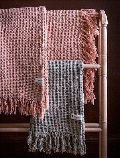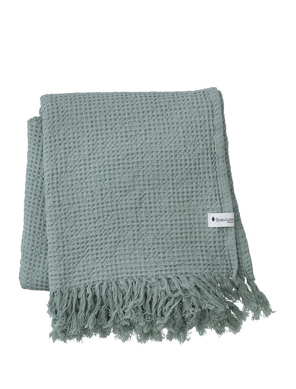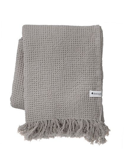 Wunderschön und extra leicht ist das Handtuch im klassischen Waffelpiqué von Bungalow. Das Textil ist hochwertig gefertigt aus reiner Baumwolle, die im klassischen Waffelmuster verwoben ist. So erhält es seine leicht strukturierte Oberfläche, die eine besonders hohe Saugfähigkeit aufweist. Die hübschen Tücher nehmen Nässe gut auf und trocknen ebenso schnell wieder an der Luft. Sie können zwischen den Größen 70x120 cm und 100x170 cm wählen. Die sechs dezenten Farben in den wunderschönen Pastelltönen grau, rosa, hellgelb, grün, blau und weiß unterstreichen das schlicht schöne Design der weichen Tücher. Als klassisches Handtuch werten die Tücher mit den lässigen Fransen jedes Badezimmer optisch auf und sehen toll aus in Kombination mit Bambushockern, Bastkörben und anderen natürlichen Materialien. Praktisch und wunderbar leicht eignen sie sich auch als Hamam Tuch in der Sauna und im Wellnessbereich. Mit dem Handtuch im Waffelpiqué von Bungalow zieht ein weiches Wohntextil mit einem sehr charmanten Design ein, das man schnell nicht mehr missen möchte.
