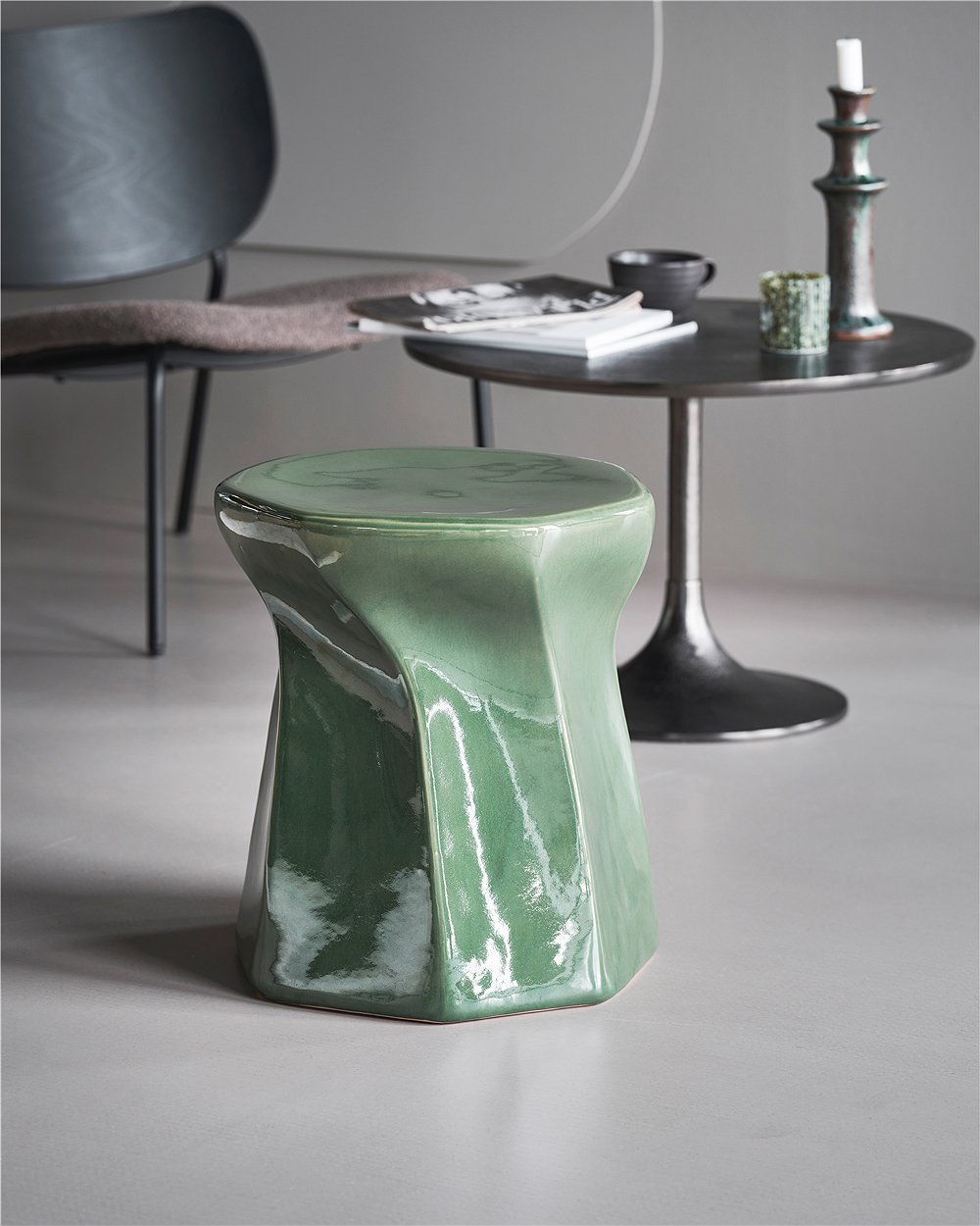 Mit dem handgemachten Hocker Lapo aus Steinzeug von house doctor erhält deine Einrichtung einen lässigen Touch. Das Keramikdesign ist leicht verdreht, was die glänzende grüne Glasur hervorhebt. So leicht geht ein Update der Einrichtung. Aufgrund des skulpturalen Looks eignet sich der Hocker für viele Anwendungsbereiche - als zusätzliche Sitzgelegenheit, als Beistelltisch und sogar als Podest für deine Lieblingsvase oder ein Tablett mit Deko. Dieser Hocker ist einfach überall ein Hit. Lapo ist 43 cm hoch und hat einen Durchmesser von 36 cm. Hol' dir mit dem wunderschönen Hocker Lapo aus Steinzeug von house doctor Farbenfrische und einen stilvollen Glanz in dein Zuhause. Wir wünschen viel Freude damit. Details: