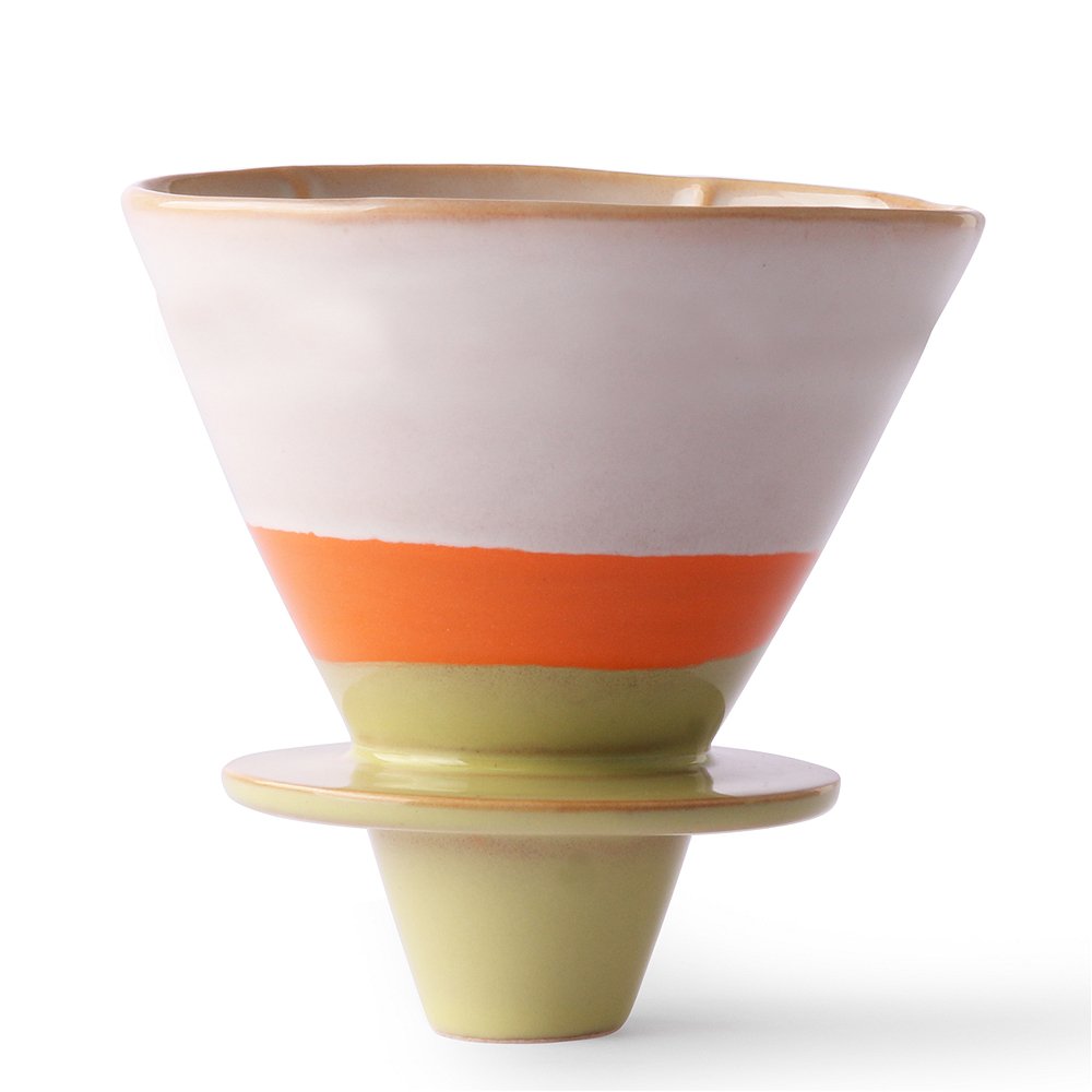 Süße Kaffeekanne von HK Living - und wer mag, kann den Filter gleich dazu bestellen. So wird entschleunigt! Nehmen Sie sich die Zeit und gönnen sich einen von Hand gebrühten Kaffee - ja der ist super lecker! Egal ob Sie schon Sammler der tollen 70iger Jahre Kollektion sind oder die Keramik das erste Mal entdecken - es gibt immer Platz für neue Kompositionen! Denn Tassen, Teller oder Becher im neuen Retrostil des niederländischen Labels finden Sie bei uns unter Geschirr dazu. Die hübsche Keramik lässt sich wunderbar kombinieren und bleibt dadurch immer frisch, neu und extrem wandelbar. Kanne und Filter sind liebevoll von Hand gearbeitet, daher äußerst individuell und können in Form und Farbe ein ganz klein wenig abweichen. Das tolle Geschirr ist Spülmaschinen und Mikrowellen geeignet. Die Kaffeekanne von HK Living ein Gewinn für jede Küche, wir wünschen ihnen viel Spaß bei der Zubereitung!Details: